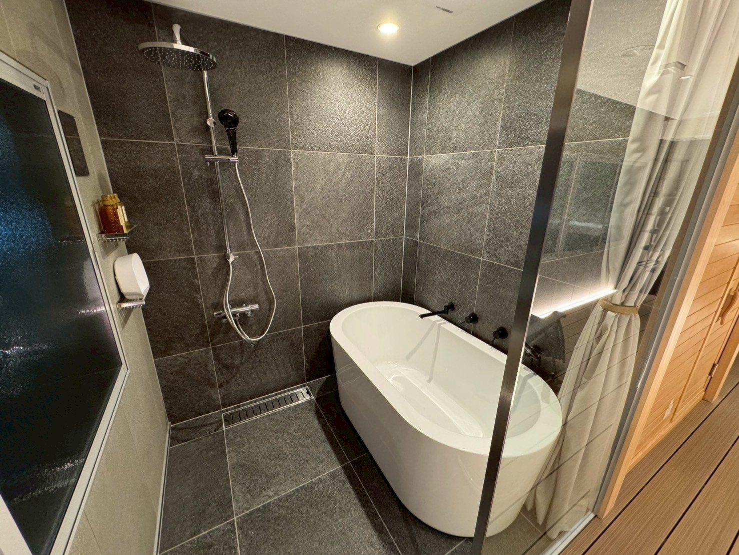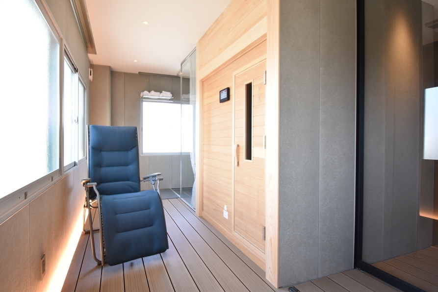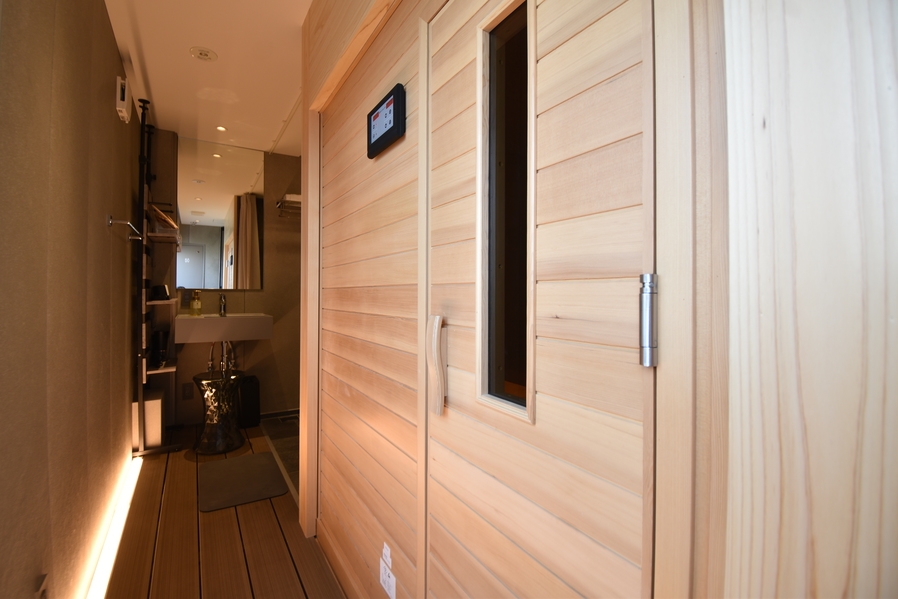 キングベッド1台(2名様定員) ・専用サウナ・バスルーム(浴槽付き)・トイレ(セパレート)