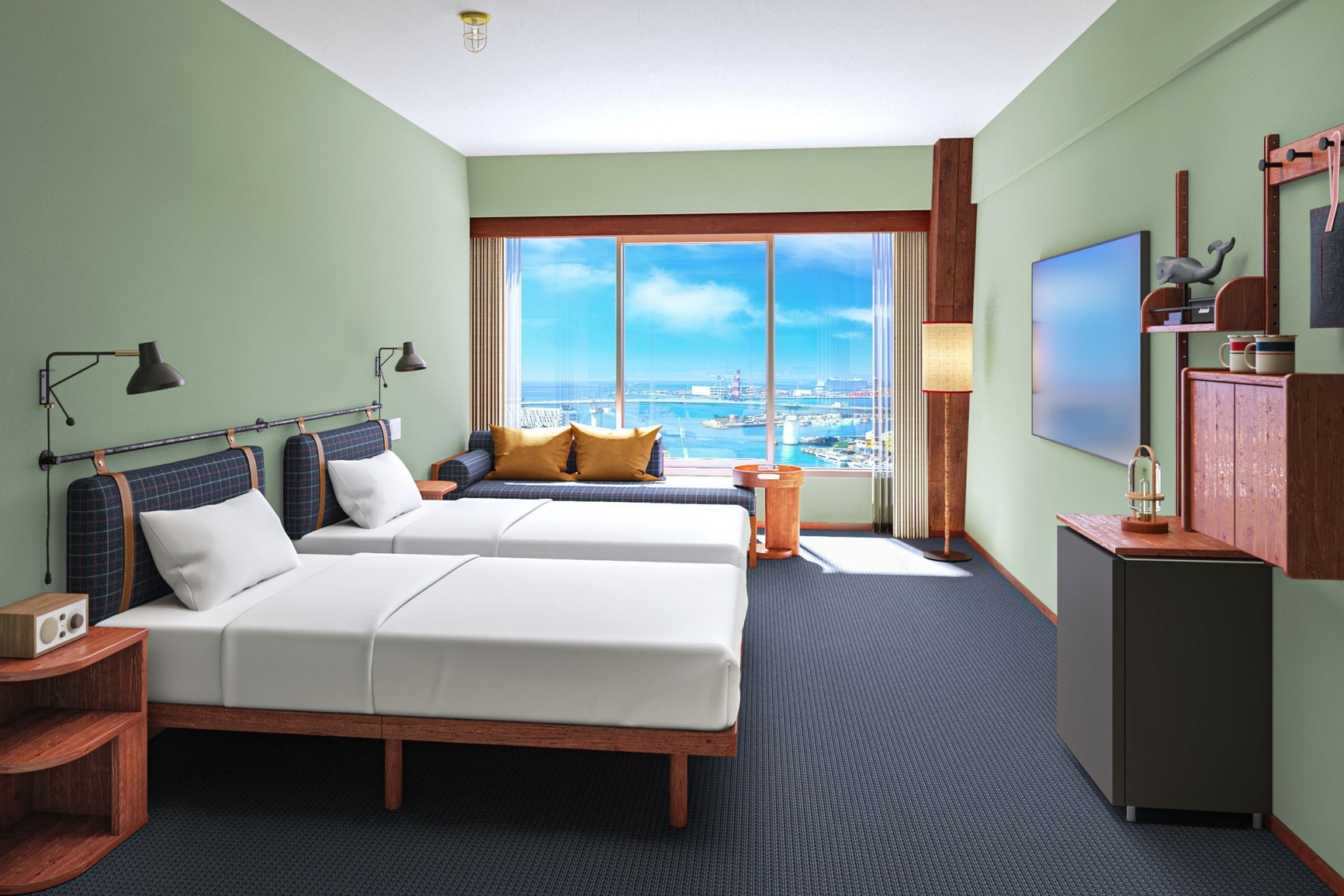 高層階に位置するベイサイドルーム。 一面に広がるオーシャンビューを一望できるお部屋。◎ソファベットを利用して最大3名様までご宿泊可能。