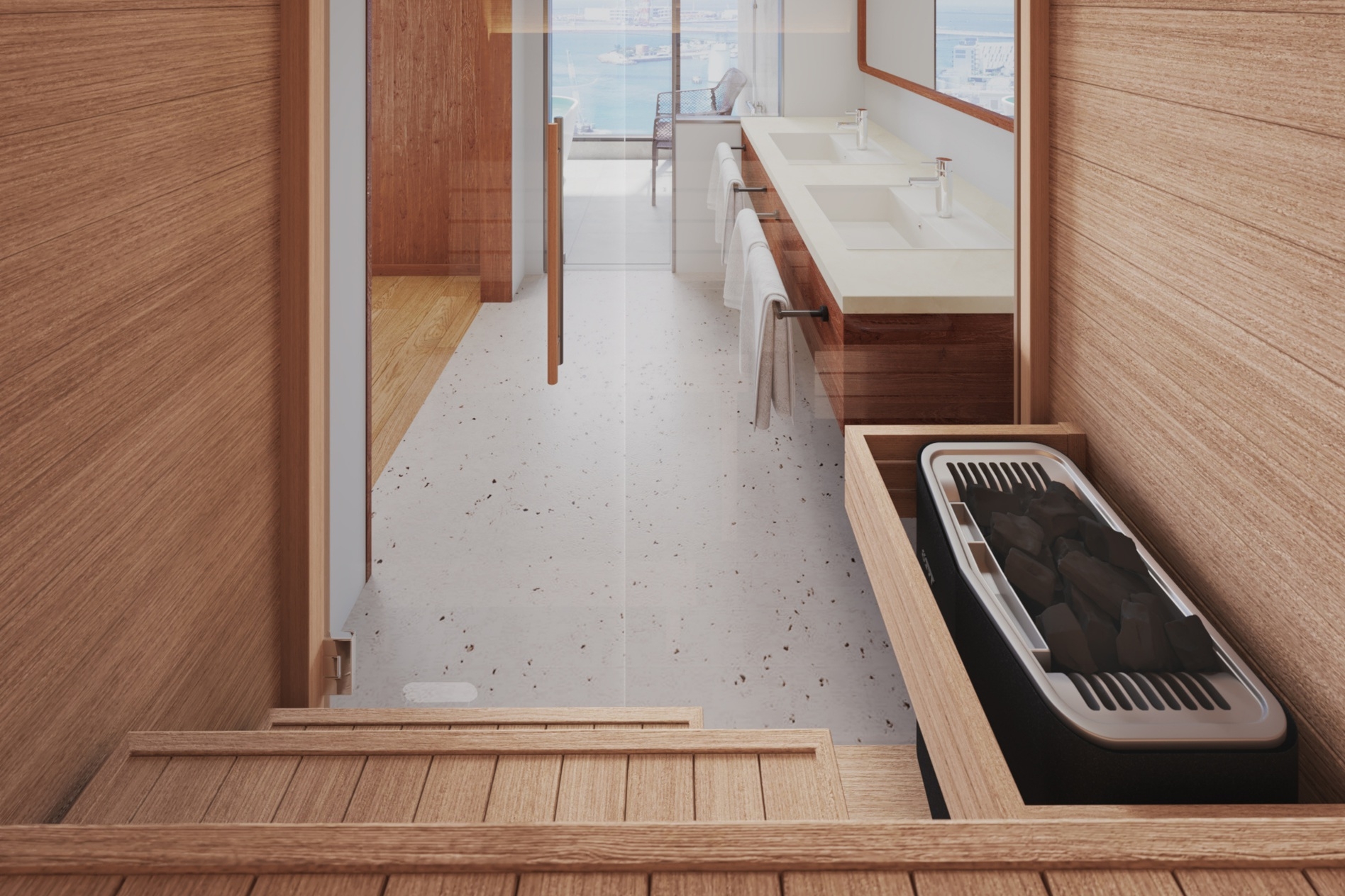 【プライベートサウナ付き】 最上階に位置するジュニアスイートルーム。 長期滞在やファミリーにも嬉しい洗濯乾燥機を完備。