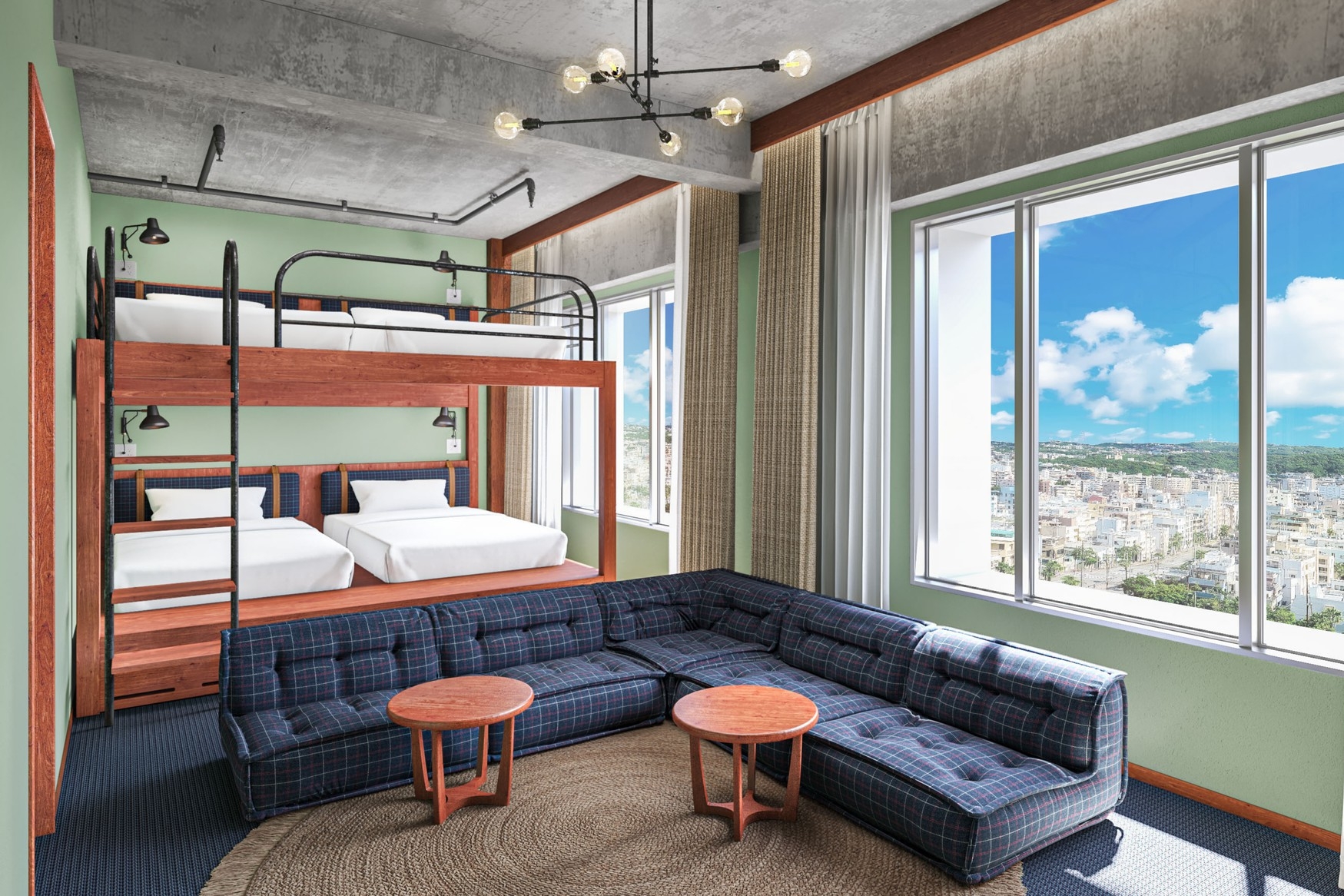 高層階に位置するシティサイドルーム。 ファミリーや友人同士のご宿泊にもおすすめのバンクベッドをご用意しております。