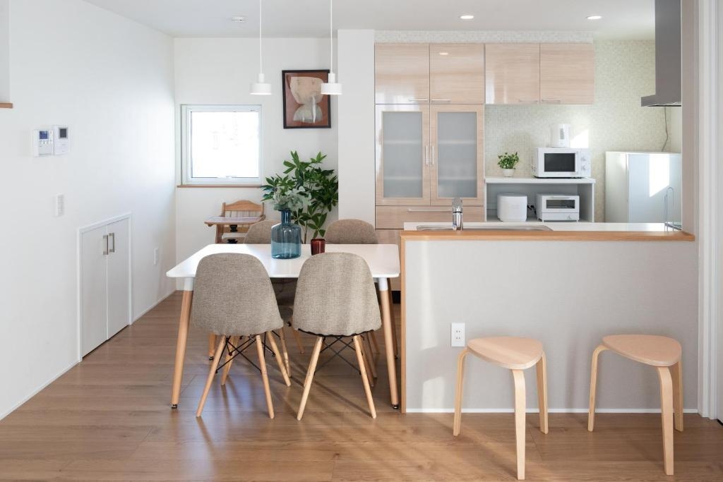 ★最大9名まで宿泊可能な3LDKの新築で広々空間・大人数でもゆったり過ごせる快適なお部屋です。・キッズベッド&キッズチェアを完備しているので、小さなお子様連れでも安心!エアコン暖房全室完備★アクセス抜群&便利な立地・旭川駅 まで車で8分・旭川空港 から車で15分周辺にはコンビニ、レストラン、スーパー、ユニクロ、病院、ゲオなどが車で5分以内に揃っており、滞在中も不便を感じません。旭川市内観光や美瑛・富良野へのお出かけにも便利なロケーションです!★便利な設備で快適な滞在をサポート・高速Wifi と 大型スマートTV:家族や友人とリビングで楽しいひとときを。・キッチン完備:IHコンロや調理器具付きで自炊も楽々。・洗濯機:長期滞在にも安心の設備!★清潔&モダンな空間でリラックス・プライベートを確保できる 3つのベッドルーム。・洗練されたモダンなインテリアで心地よい滞在をお約束。・ちょっとした食事やコーヒータイムに便利な カウンター付きキッチン。家族やグループ旅行の思い出作りにぴったりの宿泊先です!宿泊先〇Wi-Fi/暖房/エアコン(各部屋)完備〇キッチンIHコンロ/冷蔵庫/基本的な調理器具/炊飯器/電子レンジ/電気ポット/トースター/食器/ミニカウンター〇リビング大型スマートテレビ/ローソファ/テーブル/物干し竿〇寝室(3部屋あり)シーツ類/ベッド/収納〇バスルームヘアドライヤー/洗濯機/乾燥機/タオル/ボディソープ/シャンプー/リンス/トイレットペーパー〇ファミリー向け設備子供用椅子/ベビーベッド/子供用食器〇その他アメニティスリッパ