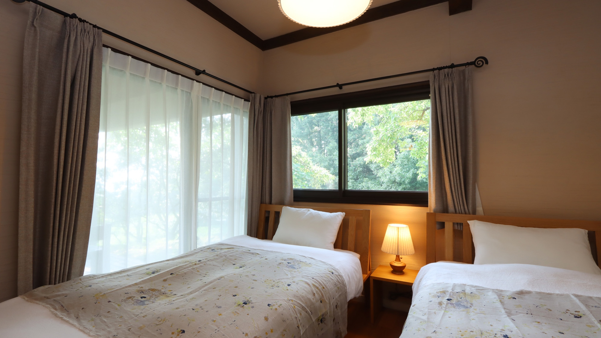 窓の外に広がる緑、風の音、鳥のさえずり、夜の星空……そのすべてが、ゲストのみなさんの時間をやさしく包み込みます。