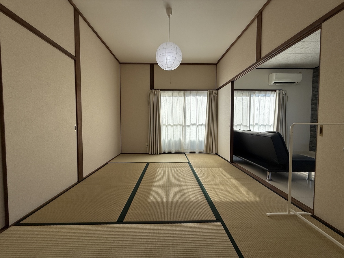 【10.5帖リビングダイニング 6帖和室1 6帖和室2 6帖洋室の広々素泊まり【 トイレ 脱衣所 浴室あり 【リフォーム済みで白をベースとしたシンプルな内装
