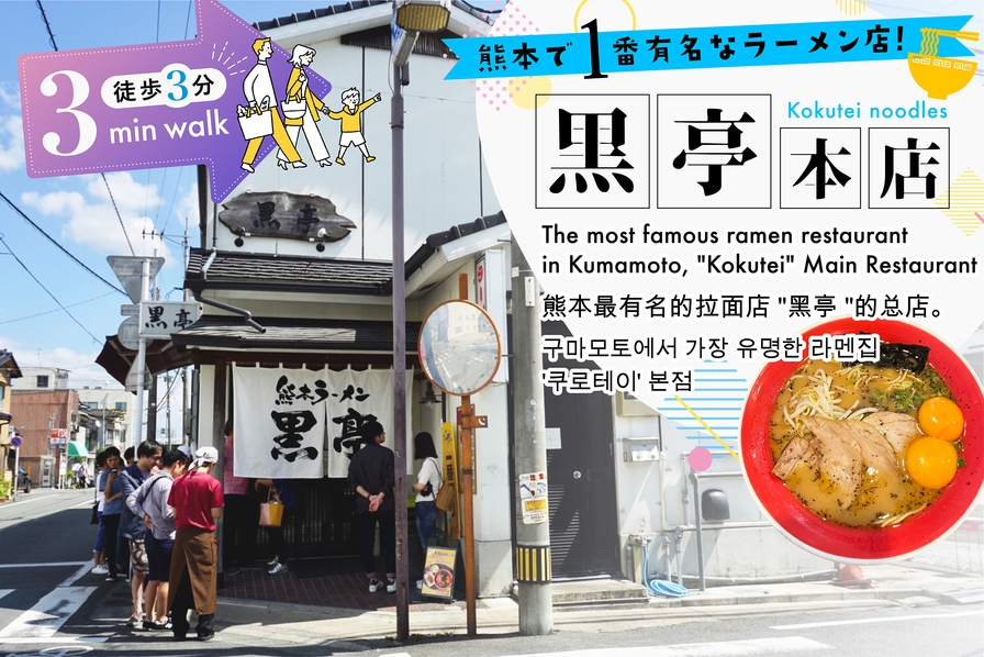 熊本市で1番有名なラーメン店【黒亭】:徒歩約2分