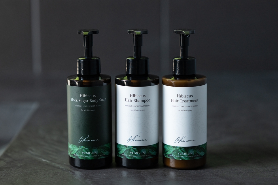 ヘアケア・スキンケアのアイテムは、沖縄・今帰仁のハイビスカスを使用したボタニカルブランド「YUMEJIN」の製品をご用意しています。