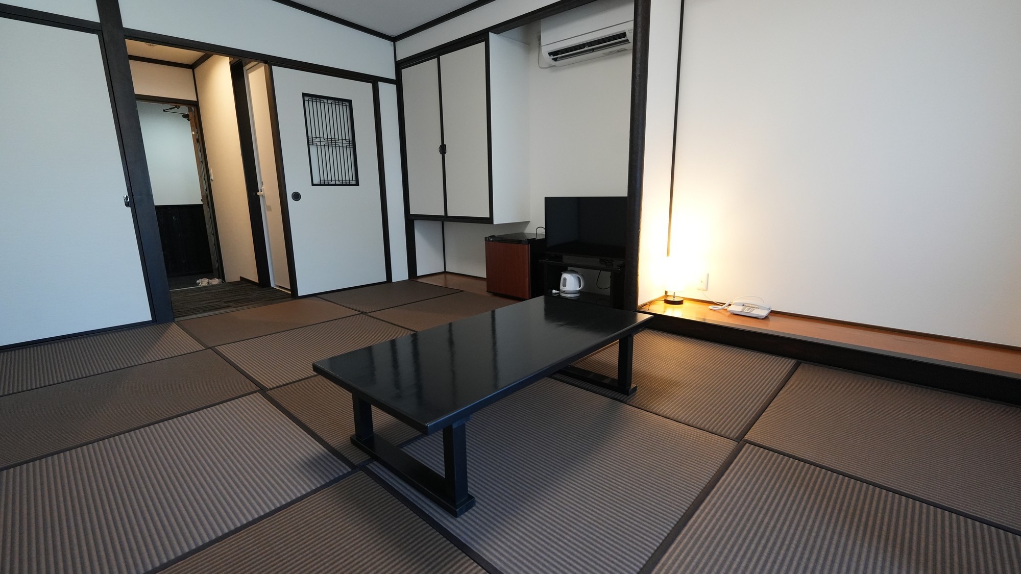 禁煙/琉球畳をあしらったシンプルでモダンな和室(8畳)/布団最大3組/温水洗浄付トイレ/サウナ・大浴場※男女入替制/無料平面駐車場・シアタールーム※予約制