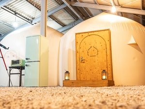 インスタントハウスは、真っ白なふわふわドームのようなかわいいテントが特徴で、素材そのものが断熱材のため、一年を通して快適に過ごせます