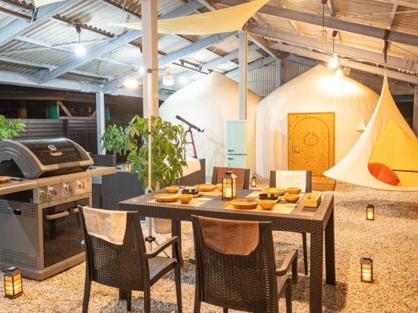 <プランの内容> 1 2023年8月末にオープンしたインスタントハウス(客室)に宿泊 2 インスタントハウスは、真っ白なふわふわドームのようなかわいいテントが特徴で、素材そのものが断熱材のため、一年を通して快適に過ごせます 3 客室内は洋室・ツインルームになります。3名・4名様でのご利用の場合、ソファベッドをご用意 4 敷地内には専用ダイニング・露天風呂完備! 5 夕食は豪華BBQを専用ダイニングで <夕食メニュー・2名分> 1 土佐あかうしステーキ(約200g) 2 四万十ポーク(約200g) 3 はちきん地鶏手羽(2本) 4 金目鯛酒蒸し(1匹) 5 室戸産の干物(1枚) 6 海老(2尾) 7 きのこのアヒージョ 8 コーンバター 9 炭ウインナー(4本) 10 炭パン 11 海鮮パエリア 又は 海鮮バタークリームリゾット 12 室戸産の野菜 13 チョコバナナ ※メニューは季節によって変更となる場合がございます ◆部屋及び敷地内設備・備品 ◎部屋 エアコン/Wi-Fi(無料)/ドライヤー/バスタオル/フェイスタオル/ジャンプー/コンディショナー/ボディーソープ/ハブラシ/カミソリ/クレンジングオイル/洗顔/化粧水/乳液/コットン/綿棒/マウスウォッシュ/ボディタオル/お子様用ハブラシ ◎敷地内 専用ダイニング/冷蔵庫/専用露天風呂/ハンモック ◆チェックイン:15時?21時/チェックアウト:10時