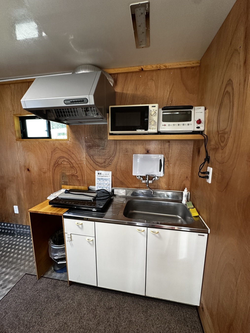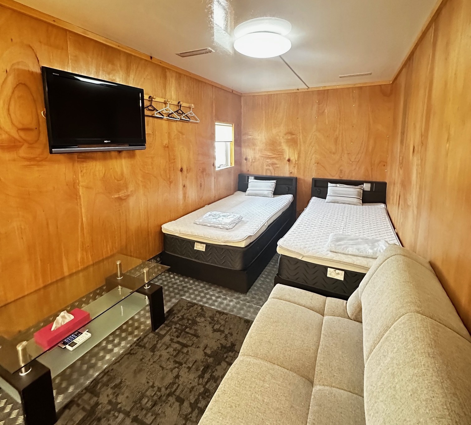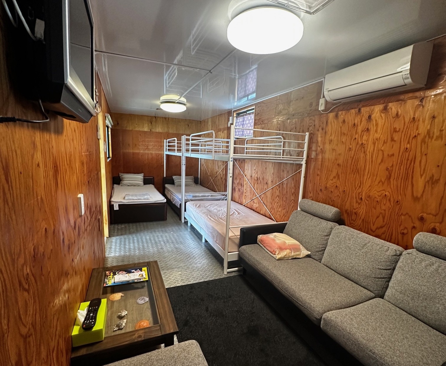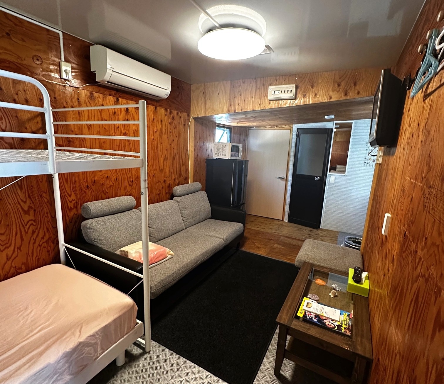 海を望むコンテナ型ゲストハウス。キッチン・シャワールーム付で、素泊まりでも快適に滞在できるお部屋です。