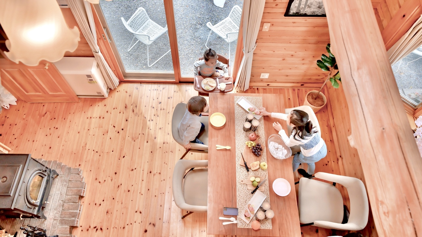 フルキッチン、ホームシアター、薪ストーブ付きの素泊まりプラン