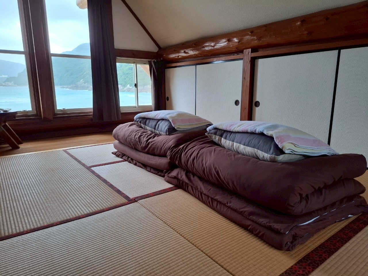 ◆見つけたらラッキー!空き状況によって設定されるお得な特別プランでございます◆****************【コテージ】◆本プランでは、ご予約人数の追加は承れません。6名以下でのご利用をお願いいたします。****************目の前は高井旅海水浴場。お部屋からは、五島灘の美しい海と水平線を望めます。1階は広々とした吹き抜けのリビング。キッチンと冷蔵庫や調理器具、食器類もご用意しております。※釣りをされる方は、魚は建物の外の水洗い場で捌いていただけます。バスルームとトイレは分かれており、大人数でのご利用も安心です。吹抜けでつながる2階は広々とした12畳の和室となっており、ゆっくり足を延ばしてお寛ぎいただけます。2階からは、潮風を感じられるバルコニーに出ていただくことができます。寝具はご予約人数分のお布団をご用意いたします。