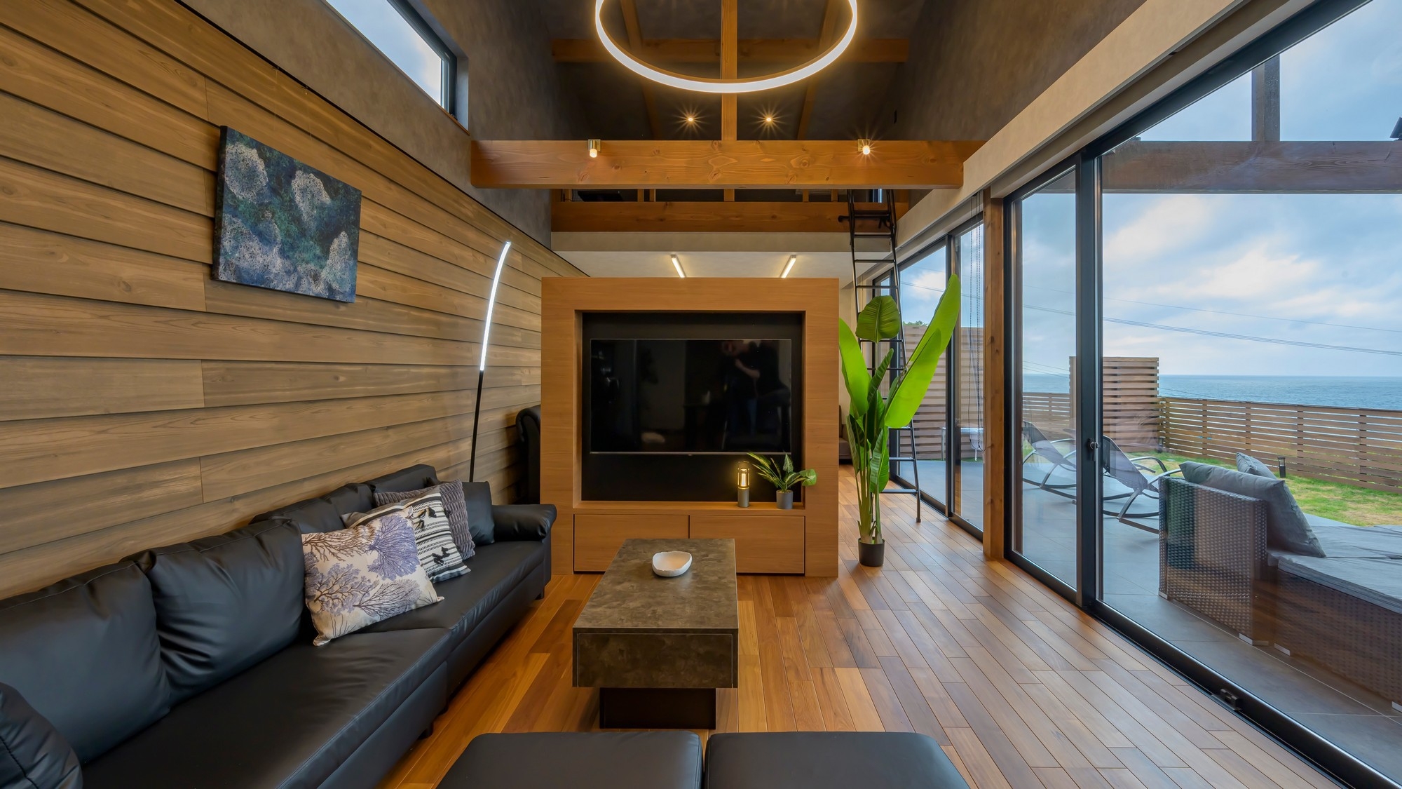海を見晴らすパノラマビュー。ゆったりとした時間が流れる海の別荘。黒を基調とした落ち着いたデザインのNOX。福井の伝統工芸を感じ体感できるお部屋です。