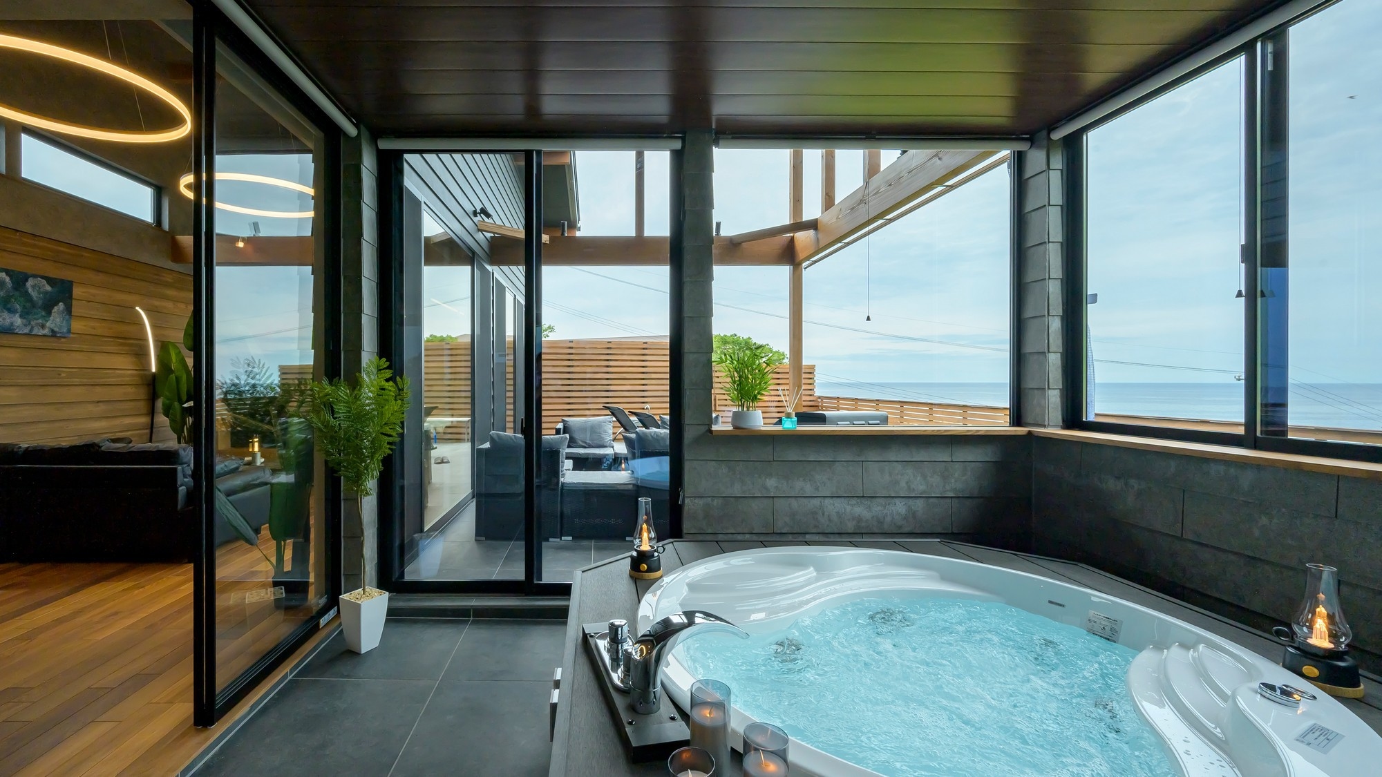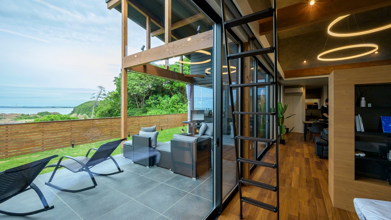 屋外デッキでは波音を聞きながら自然を感じたりと、