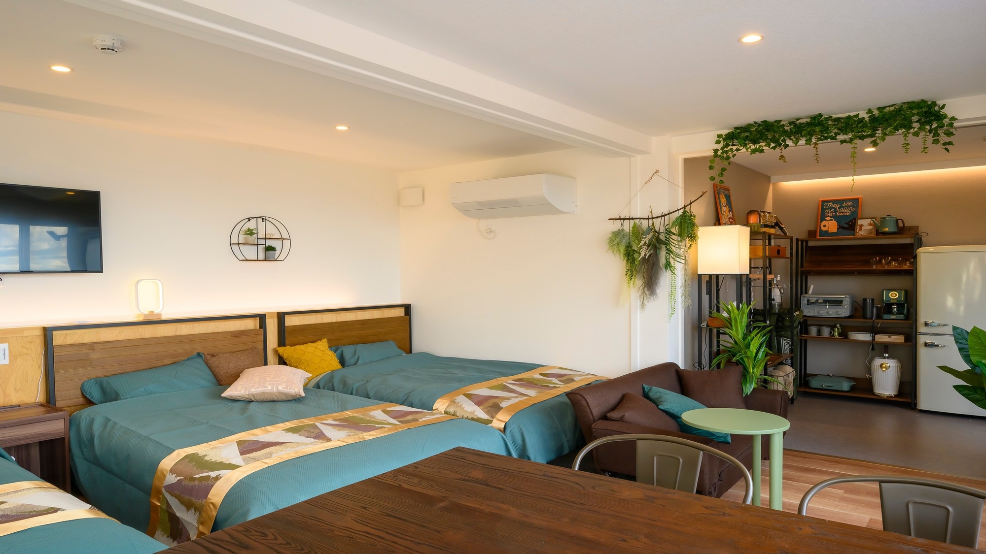 冷蔵庫にはソフトドリンク・各部屋にコーヒーマシンも付いているので、