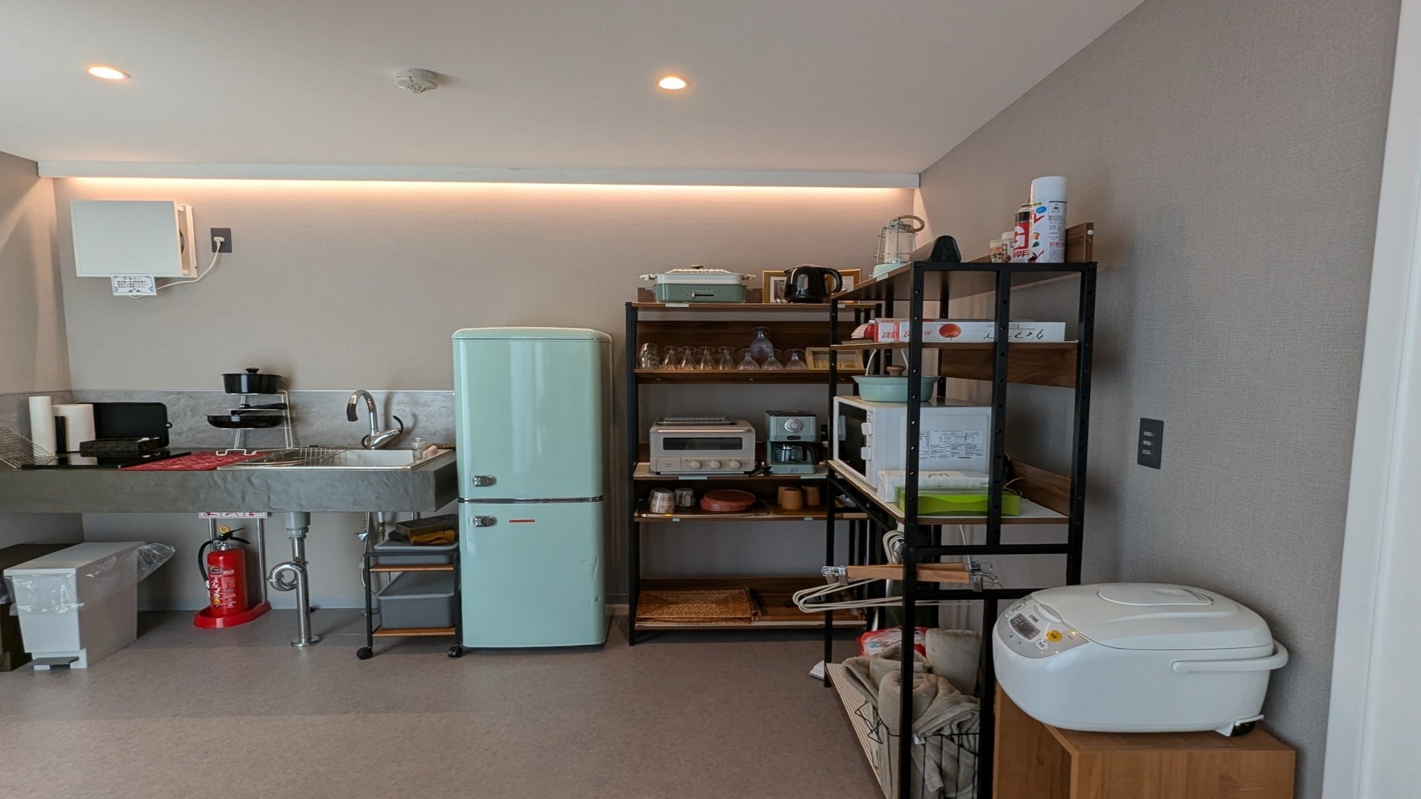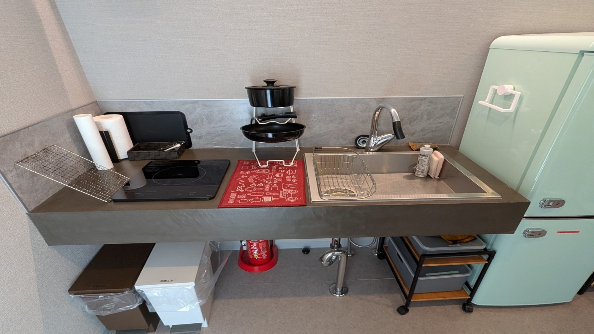 客室にはミニキッチン、鍋、フライパンなどをご用意しております。