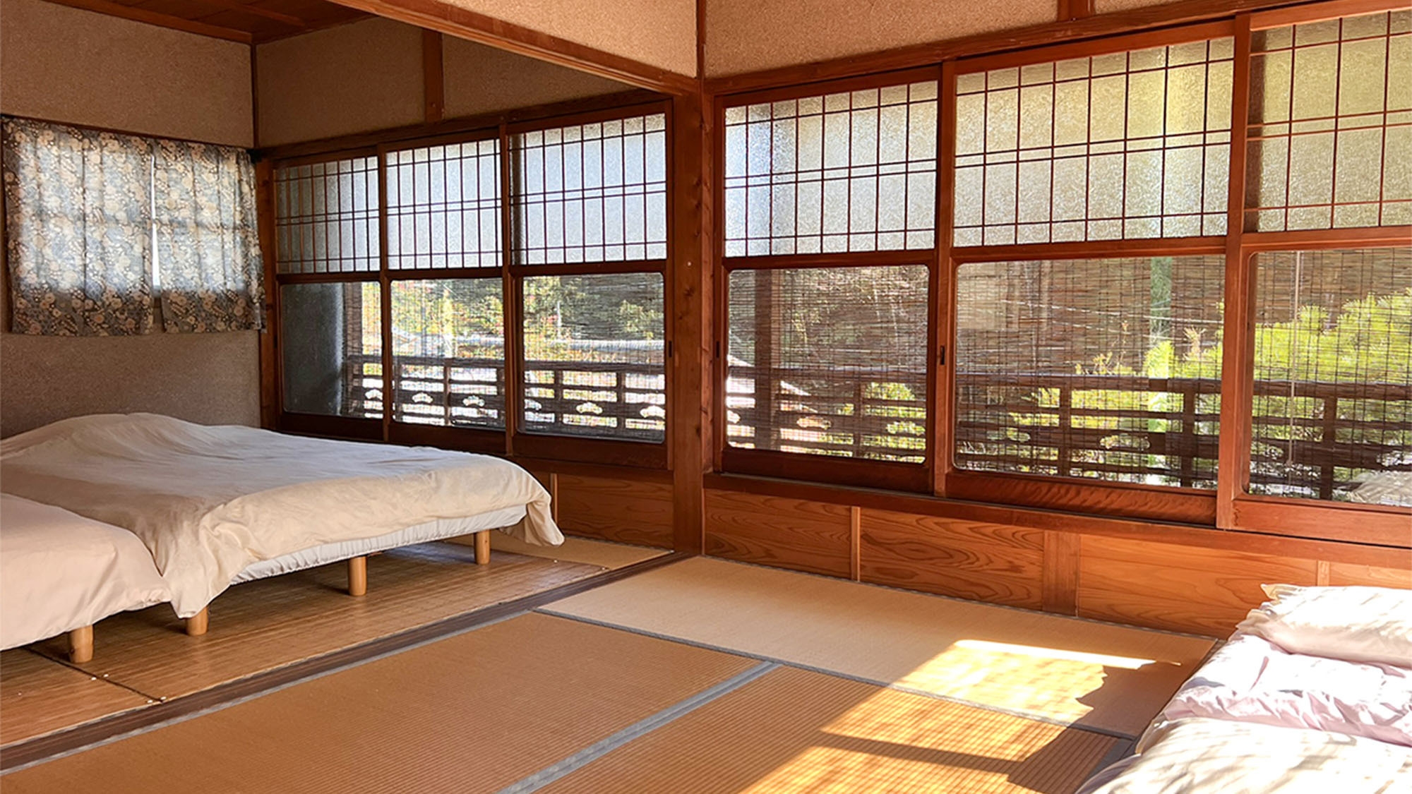 古民家を再生したゲストハウスを一棟貸しでご利用いただけます。ファミリーやグループ旅行に最適です ■寝室 ・和室4部屋 ダブルベッド2台、布団6組 ■無料Wi-