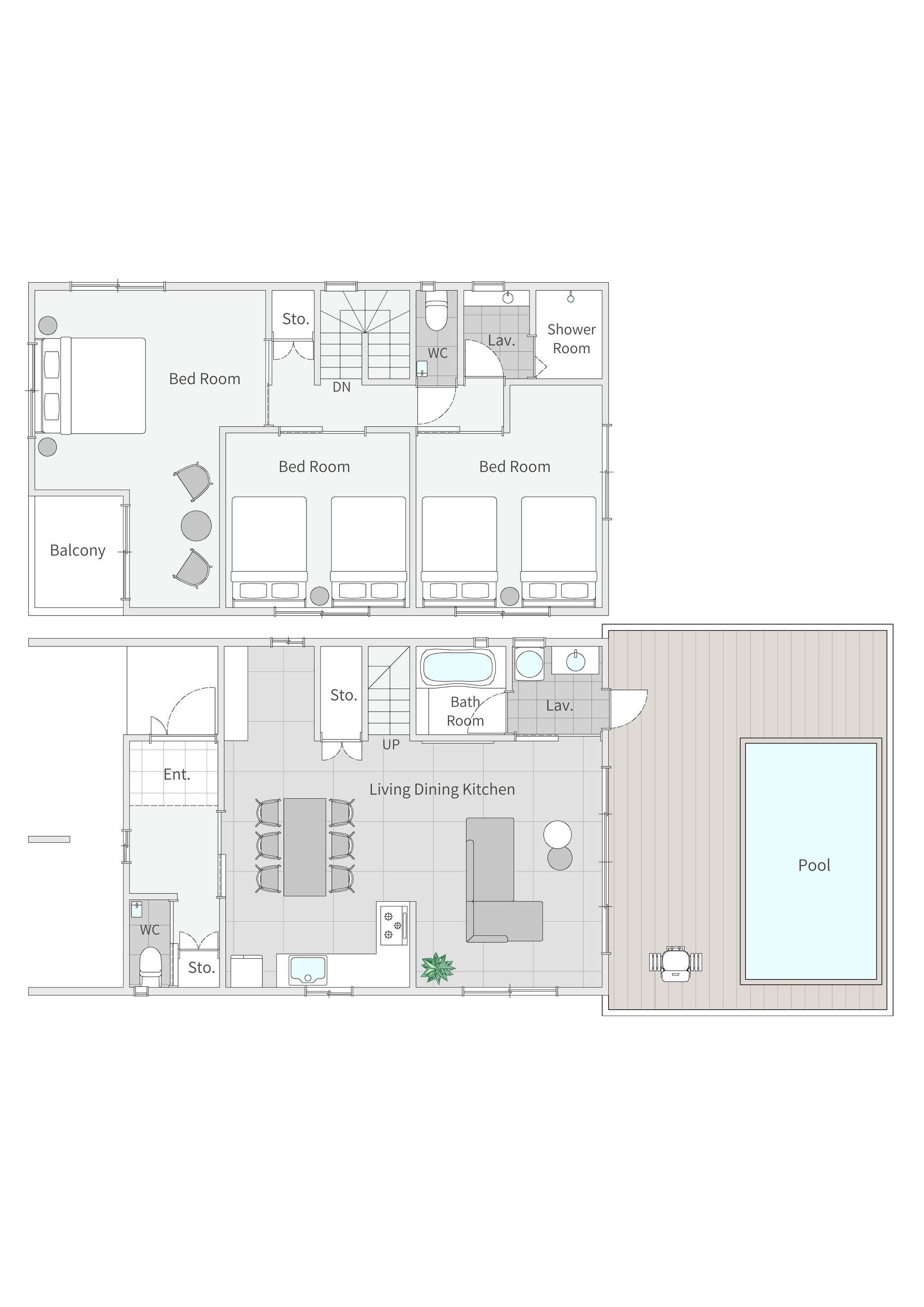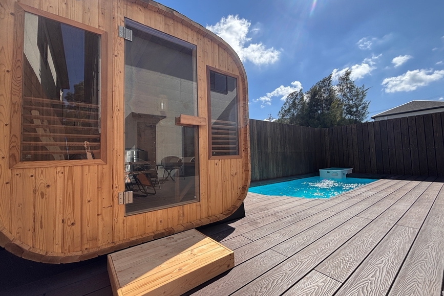 【新築(最大16名)】3LDK(110平米)/ベッド5台+折り畳みベッド3台/プール・サウナ付/BBQ設備付/駐車2台/恩納14E