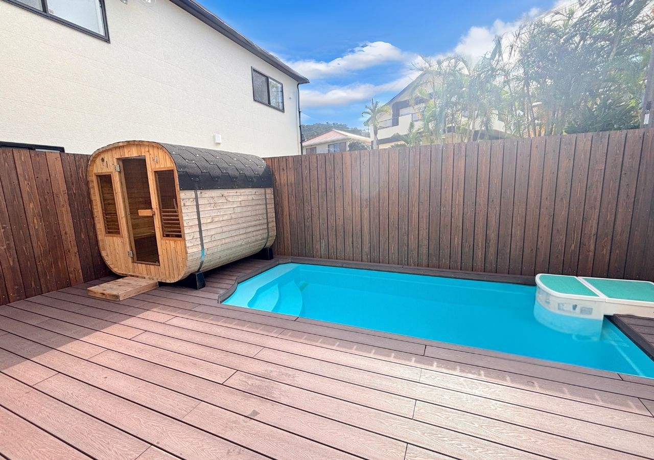 【新築(最大16名)】3LDK(120平米)/ベッド5台+折り畳みベッド3台/プール・サウナ付/BBQ設備付/駐車2台/恩納14C