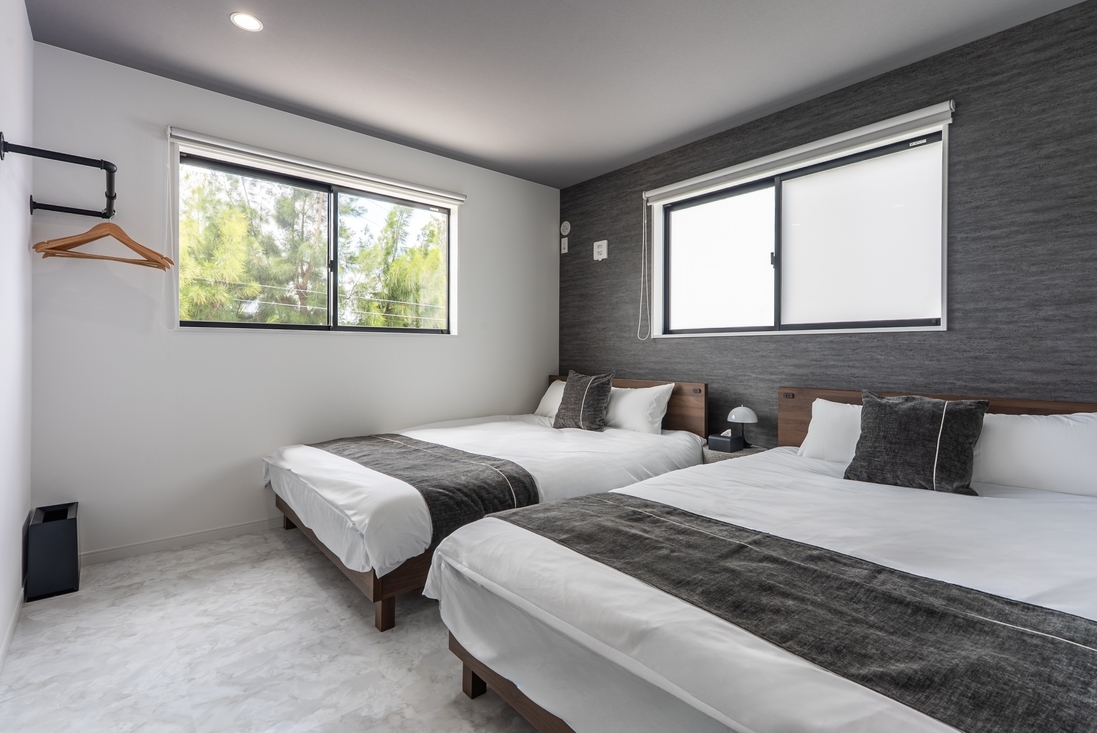・洋室 ダブルベッドx2,※セミダブル折り畳みベッドx1