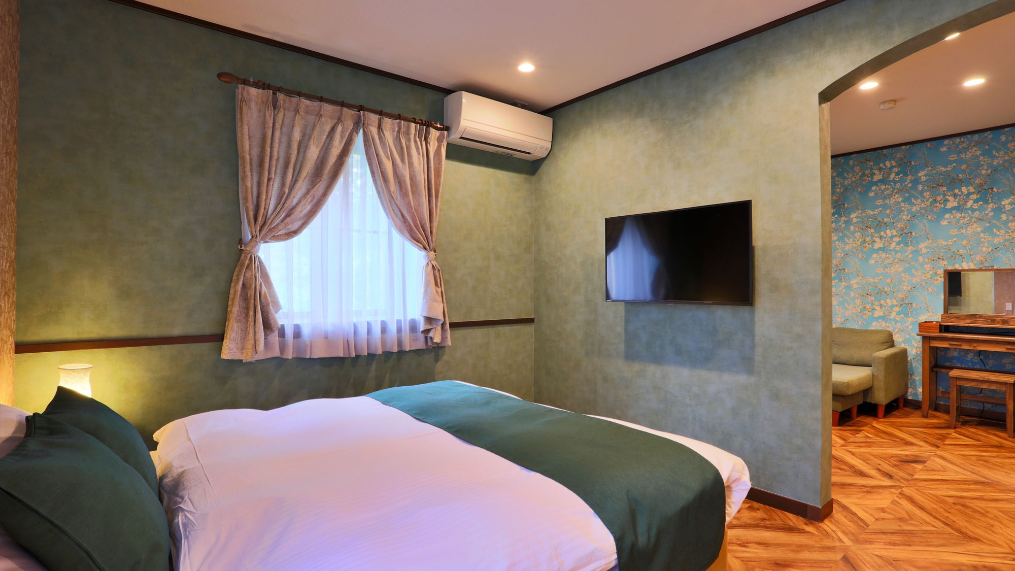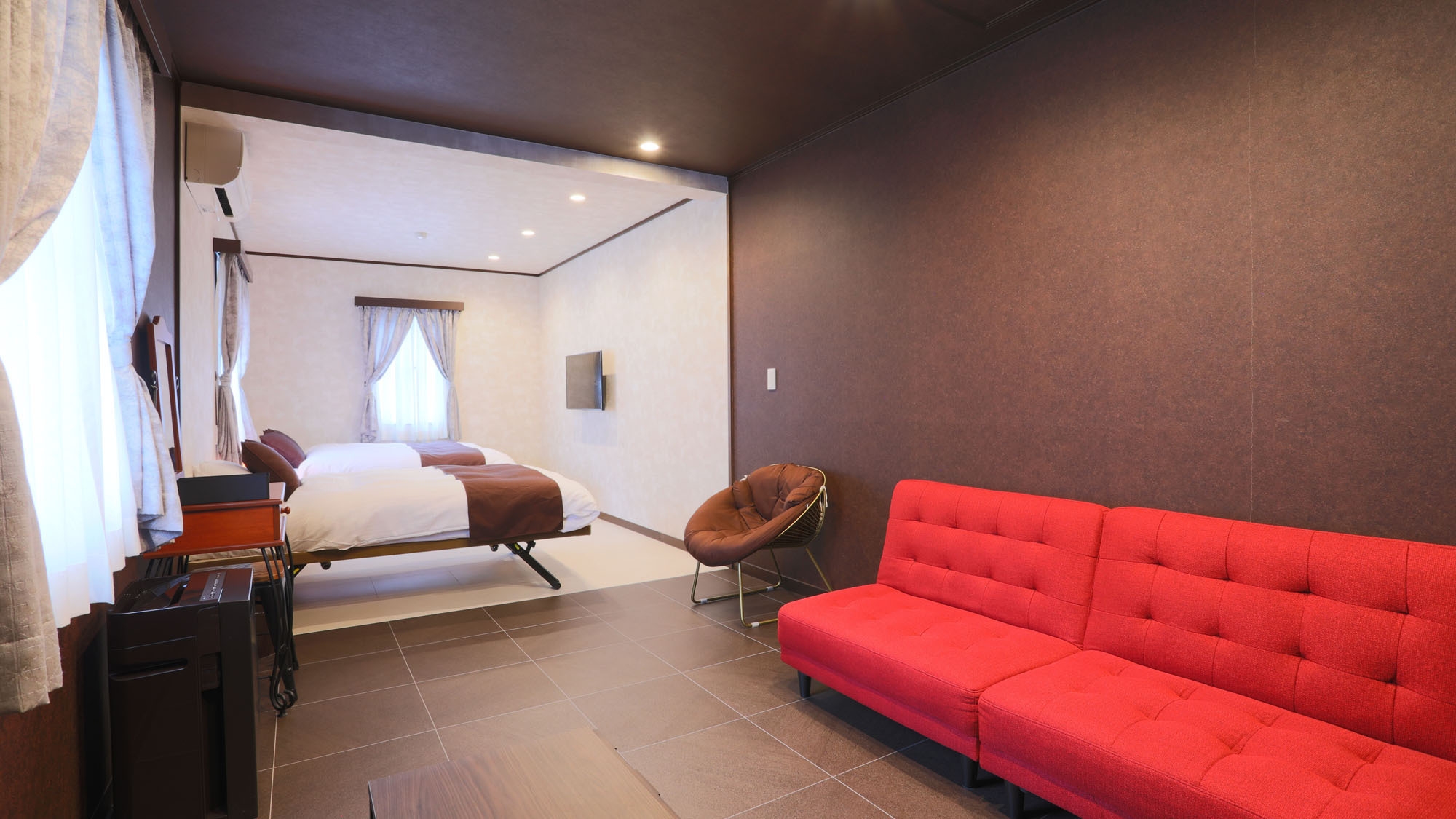 フランスベッドのベッドスペースとリビングスペースとあり、広々としてとてもリラックスしてお過ごしいただけます。