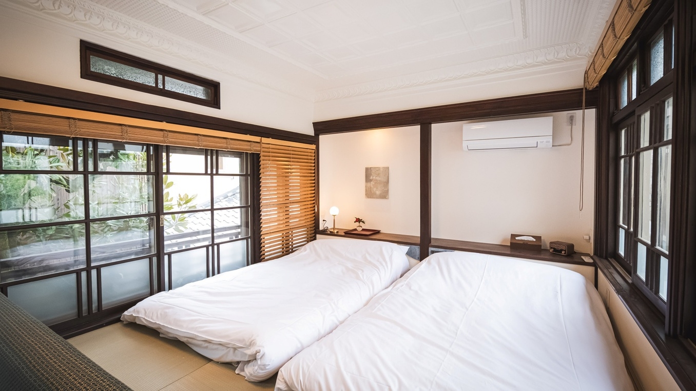 大正から昭和にかけて店や屋敷で働く女性たちが住まう長屋の一部と、曾祖父が祖父のために作った大正モダンな書斎。当時に特有な和洋折衷の様式が随所に残り、レトロな美しさをつくり出しています。伝統的な日本文化の中に取り入れた西洋のテイストは、芸術的ともいえる世界観で、タイムスリップしたかのような感覚にもさせてくれます。