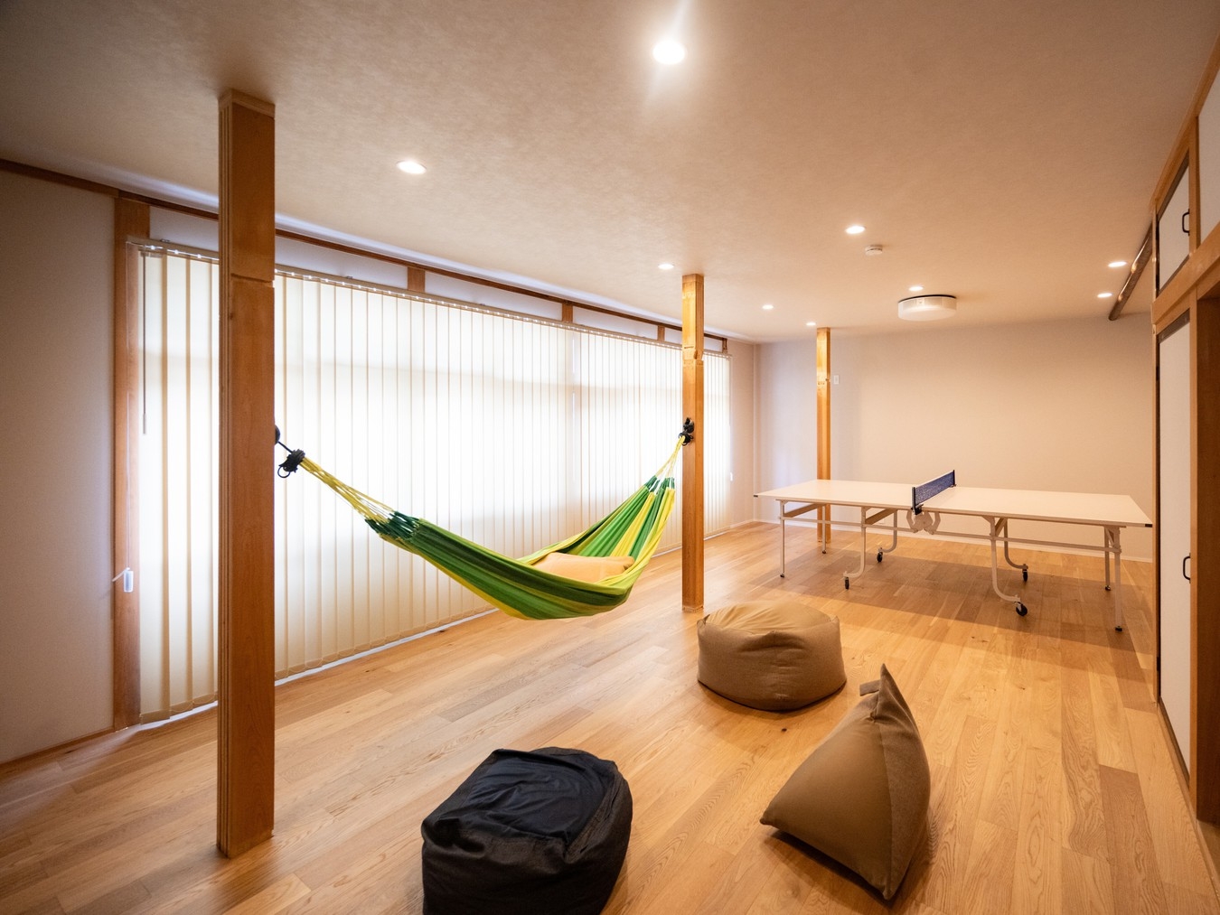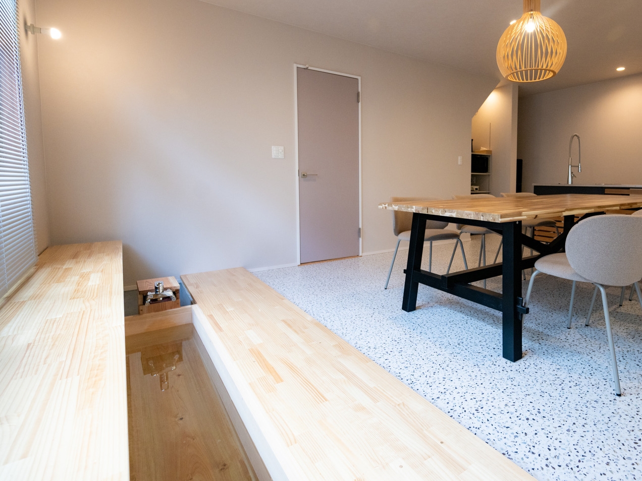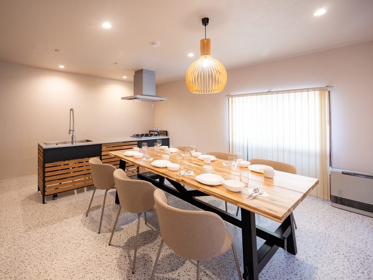 本館とは別棟。一棟丸ごと貸切りなのでファミリーやグループでも気兼ねなく過ごせます。1階にリビングとダイニング。2階に寝室2室。ダイニングには足湯もあります