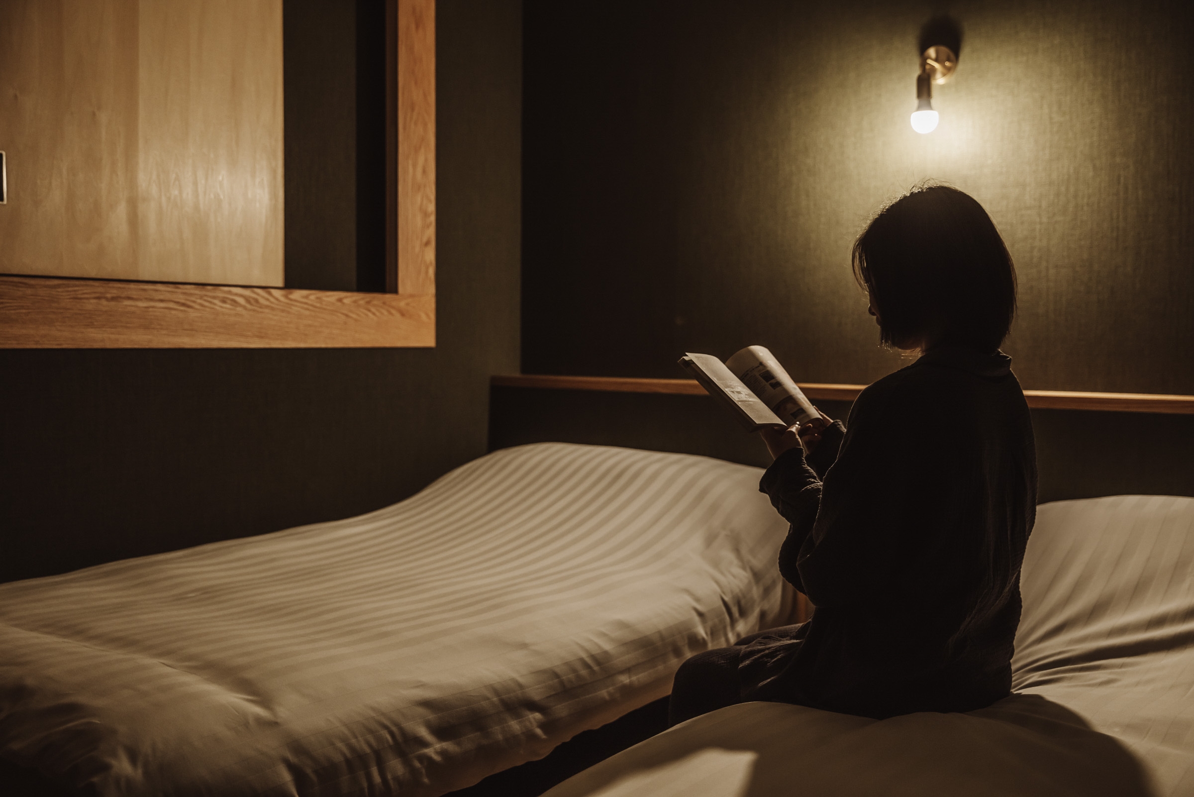 ベット2台。木の落ち着きある空間で、ご家族やご友人と快適にお過ごしいただけます。