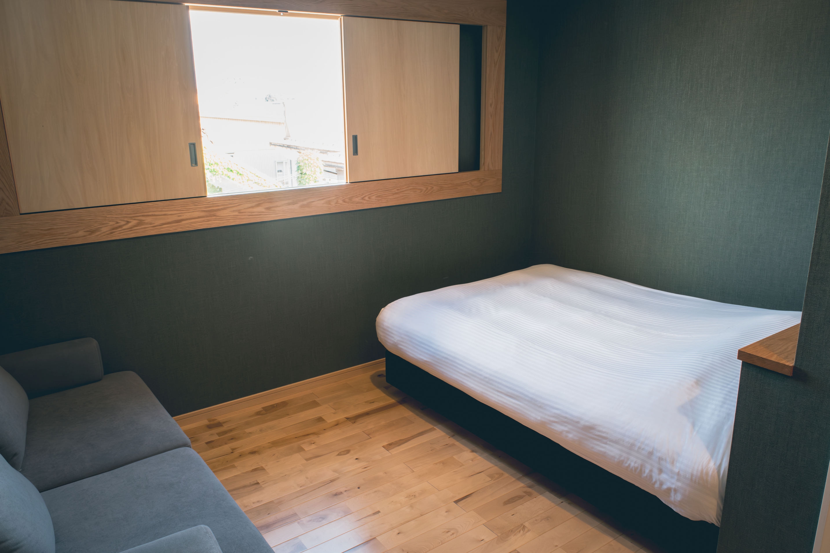 ダブルベット1台。木の温もりを落ち着いた空間でゆったりと過ごせます。