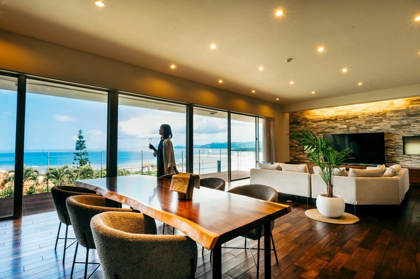 南国の緑に抱かれた静かな空間で、喧騒を離れ、ただ“居ること”が贅沢になる時間をお過ごしください。極海静邸は、石垣島最大級の広さを誇る一棟貸切のプライベートプール付きヴィラです。1日1組様限定の特別な空間で、誰にも邪魔されない極上のプライベートステイを叶えます。特徴的な曲線を描くバイオプールは、まるで島の入江を切り取ったような佇まい。南国の木々に寄り添うプールは、昼は木漏れ日を映し、夜は満天の星を映し出す静かな水鏡に。テラスで耳を澄ませば、風の音、鳥のさえずり、木々の香りが五感を満たし、深い安らぎへと誘います。邸内には、40畳を超える開放的なリビングと落ち着きある寝室を備え、余白の美を大切にしたシンプルな設えが広がります。訪れる人の心を静かにときほぐし、心身を解き放つ時間をご堪能ください。滞在中は、シェフが厳選した地元食材を使った特別ディナーやBBQ、三線の生演奏、星空ツアー、マリンアクティビティ、遊覧飛行など、石垣島ならではの体験をご用意。「なにもしない贅沢」と「したいことだけを選べる自由」。その両方を叶える場所で、大切な方と、心を満たす島時間をお過ごしください。※未就学児のお子様は無料でご宿泊いただけます。【追加オプションのご案内】●出張シェフディナー(1名)25,300円●出張シェフディナー+朝食(1名)29,150円●BBQセット(1名)16,5000円●しゃぶしゃぶセット(1名)11,0000円●キッズプレート(1名)3,300円●三線ライブ 13,500円〜●星空観賞ツアー(1名)16,500円〜●マリンアクティビティ(1名)10,000円〜●ヘリコプター遊覧飛行(1名)7,900円〜※いずれも宿泊料金とは別精算となります。※内容・料金はプランや人数により異なります。詳細は予約時に備考欄にご記入いただくか、メールでお問い合わせください。メールアドレス:info@gokkaiseitei.jp