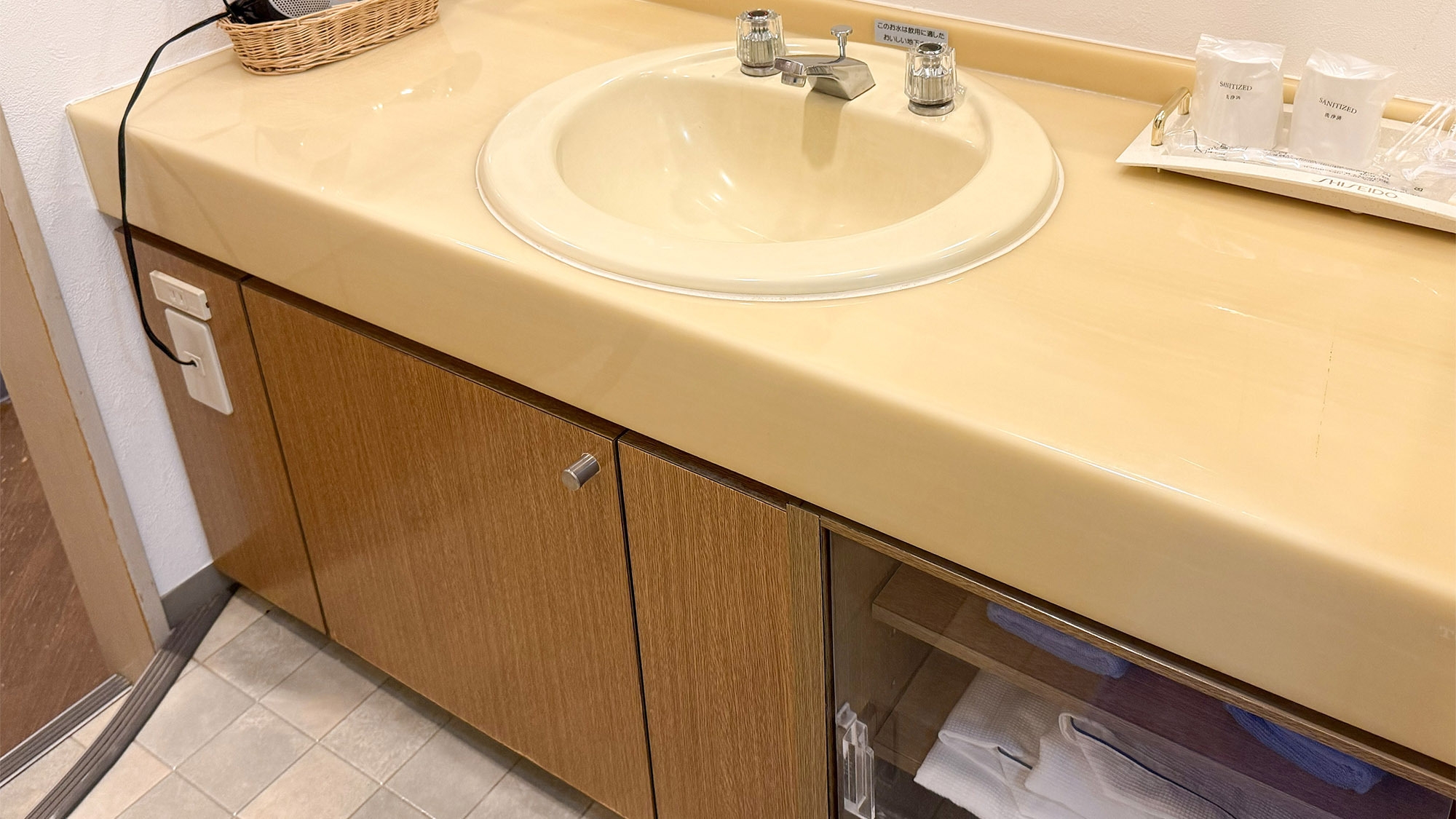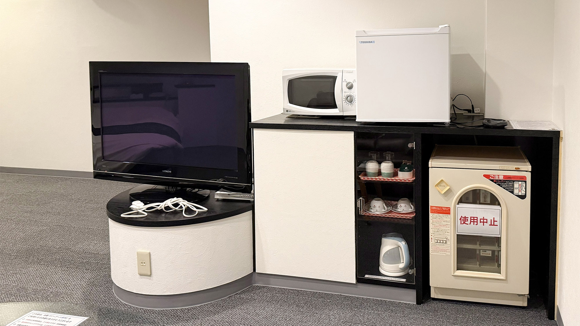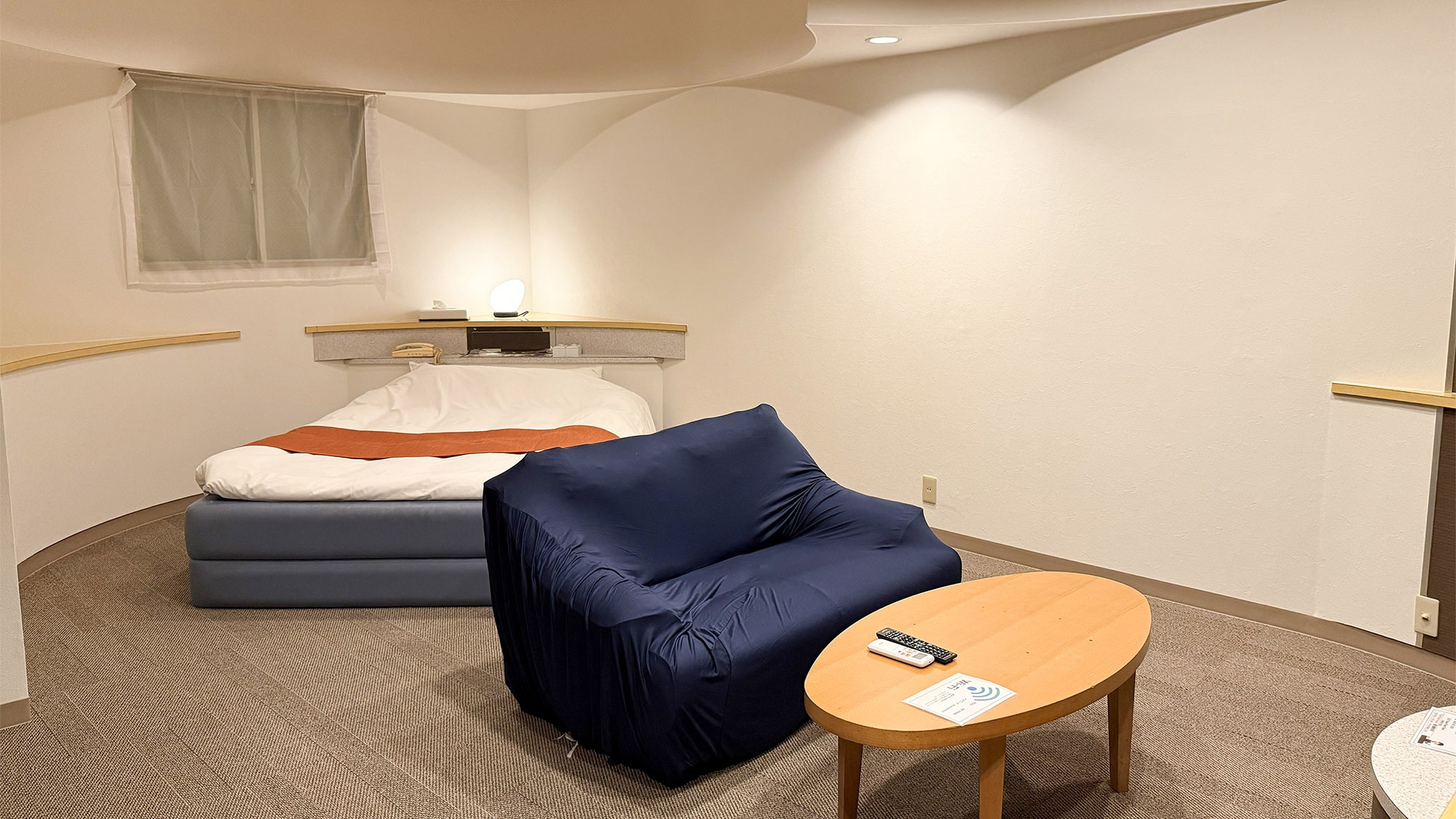 【隣の音が気になりづらい独立タイプ】ダブルベッド/ソファ/テーブル/冷蔵庫/電子レンジ/バストイレ洗面所3点独立型 客室内風呂の蛇口は温泉!