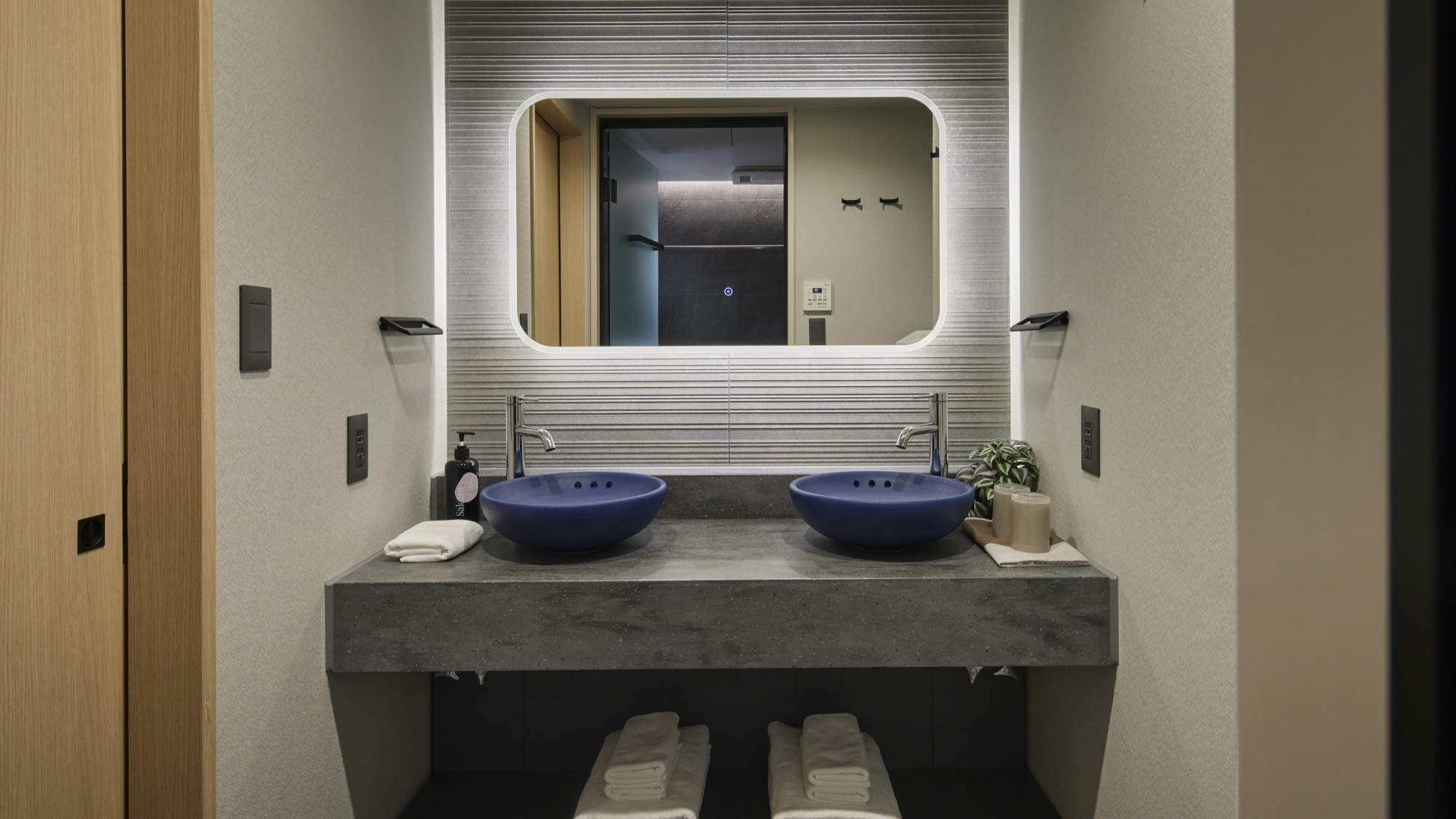 ダブルベッド2台、ソファベッド2台を備え、乾燥機能付きドラム式洗濯機・冷蔵庫・電子レンジ・「ReFa」のビューティー家電など設備も充実。