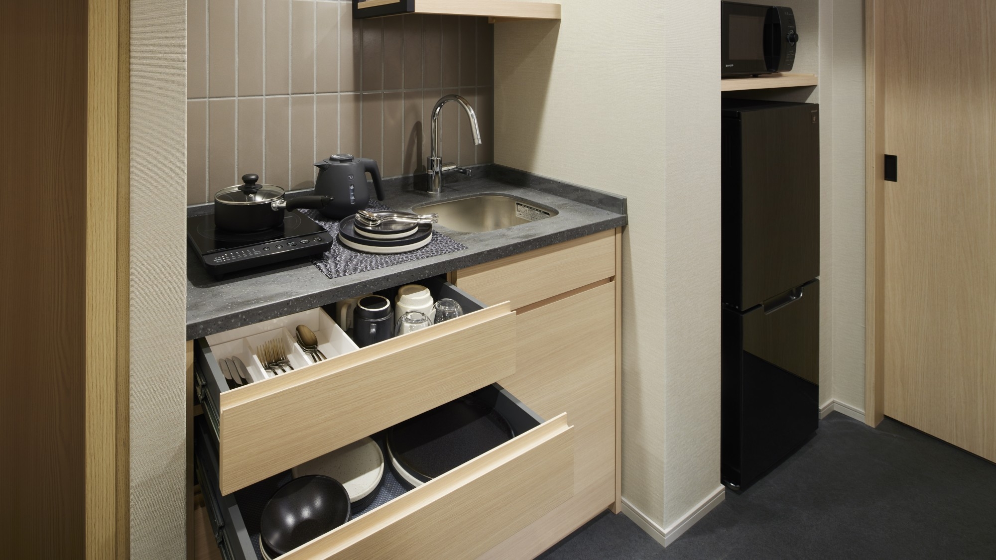 調理器具・家具・家電も揃っており、自宅のように快適にお過ごしいただけます。