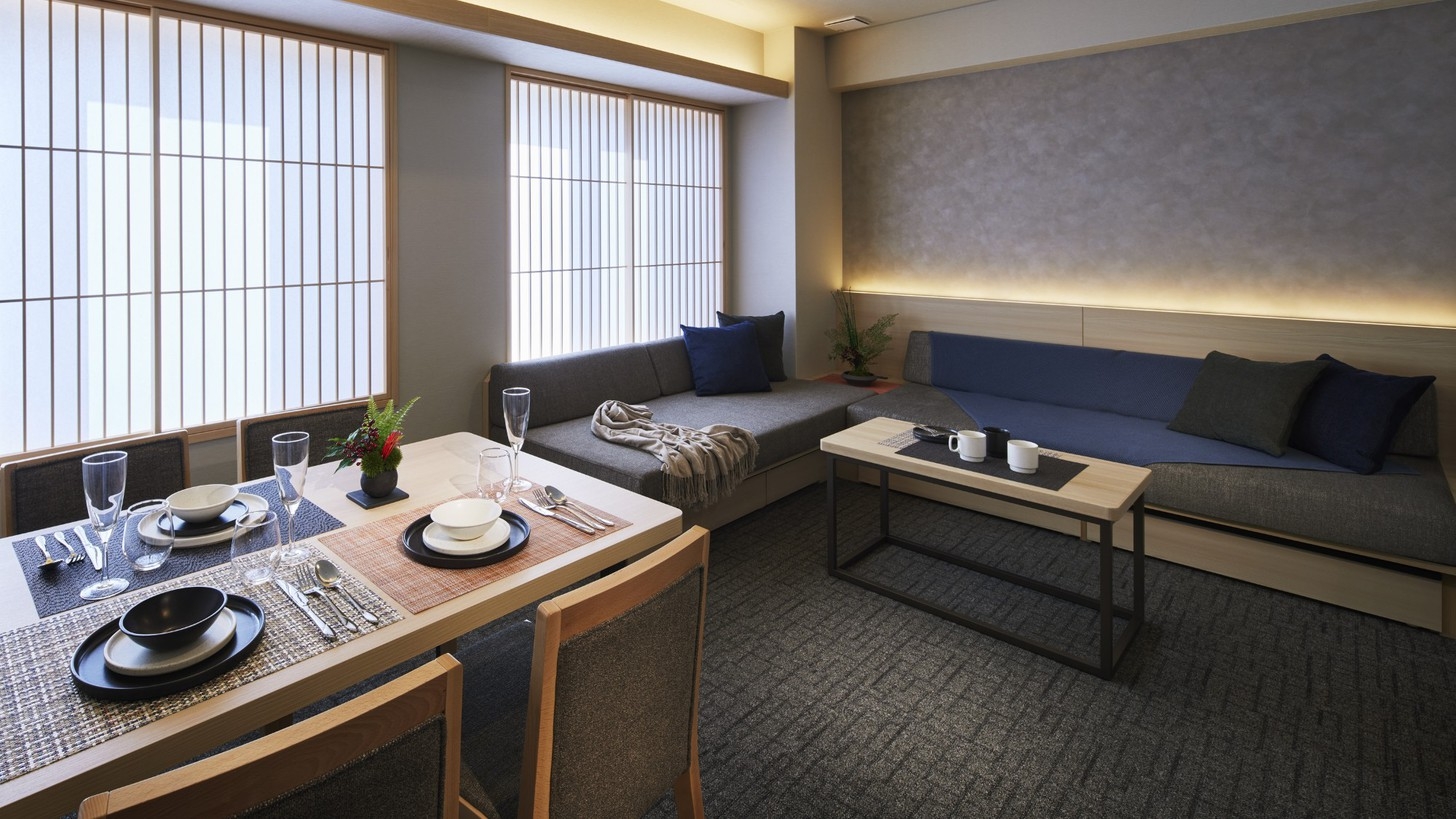 39㎡〜最大54㎡の広々とした客室にはキッチンや乾燥機能付き洗濯機を完備しており、ご家族やグループでのご滞在にも最適です。