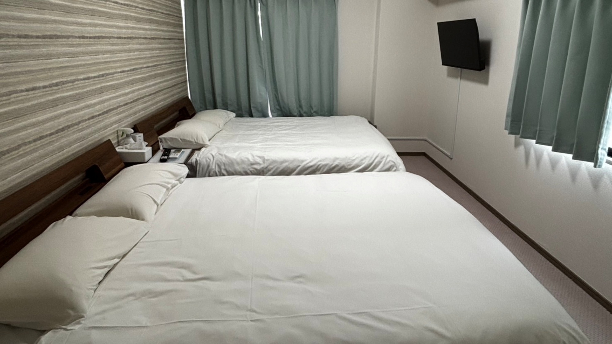 21.6平米の洋室に、ダブルベッド1台とシングルベッド1台を備えた、最大3名様用のお部屋/全室禁煙・バス・トイレ付・無料Wi-Fi完備