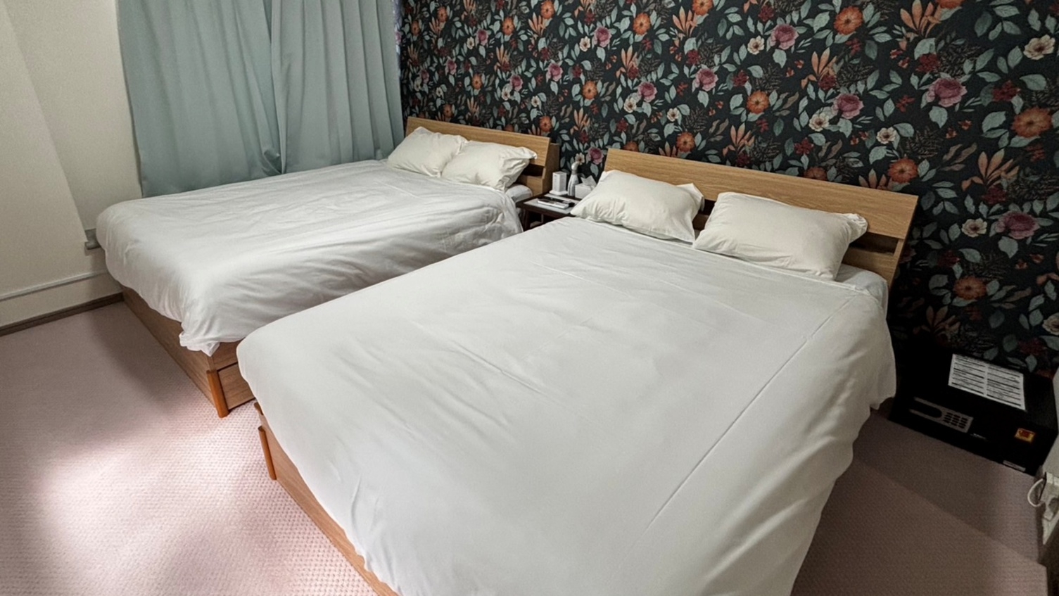 21.6平米の洋室に、ダブルベッドを2台備えたゆったり設計のお部屋/全室禁煙・バス・トイレ付・無料Wi-Fi完備