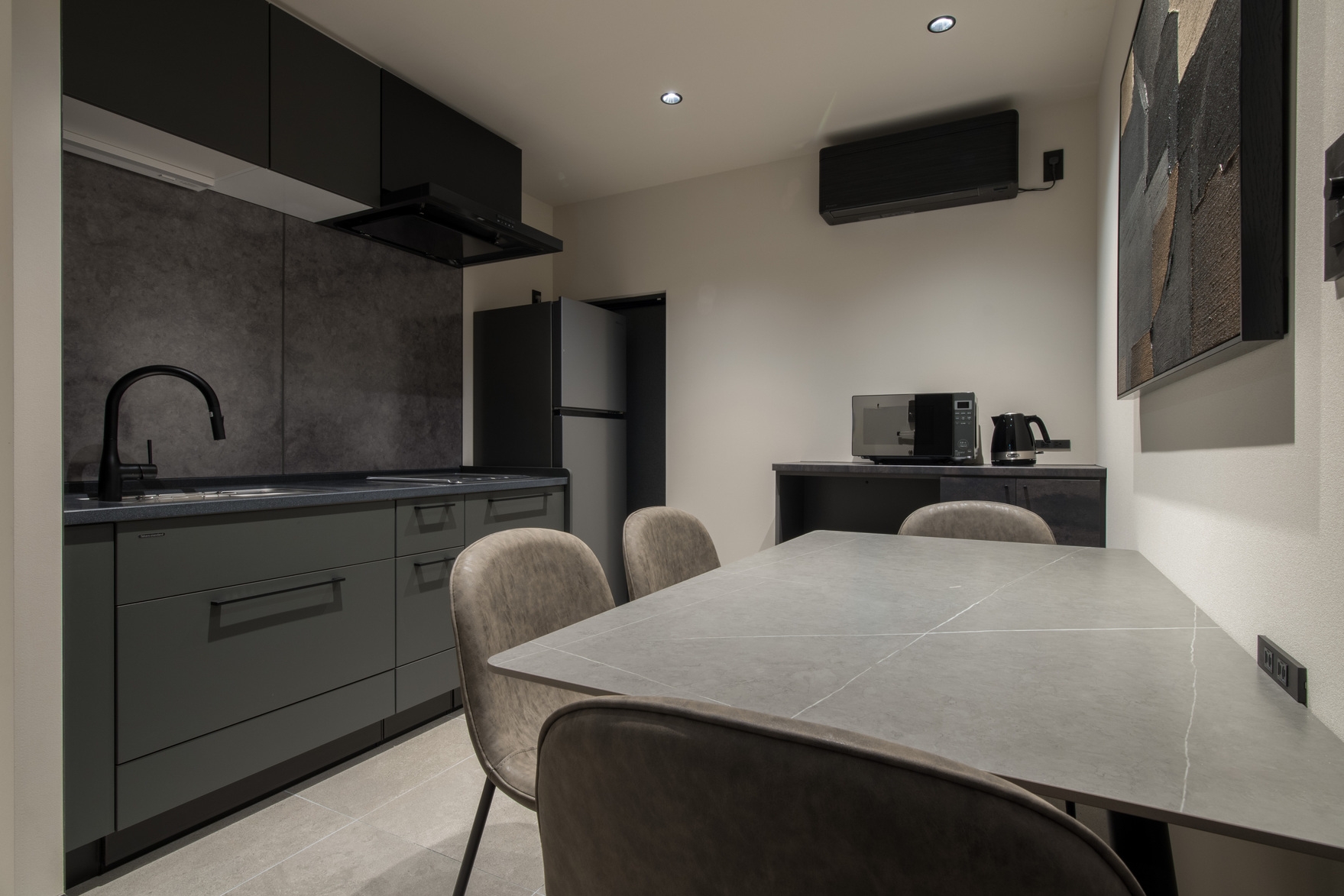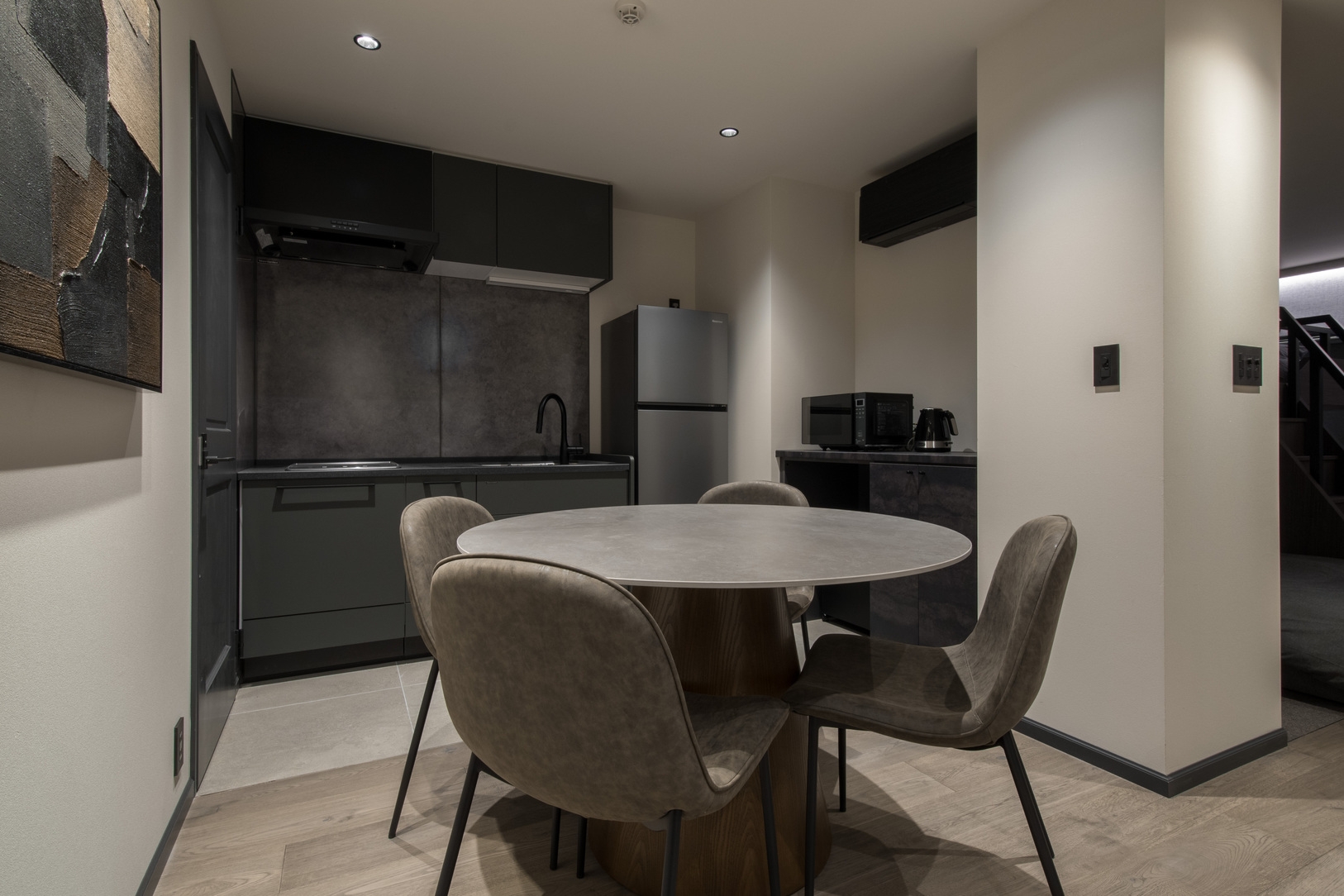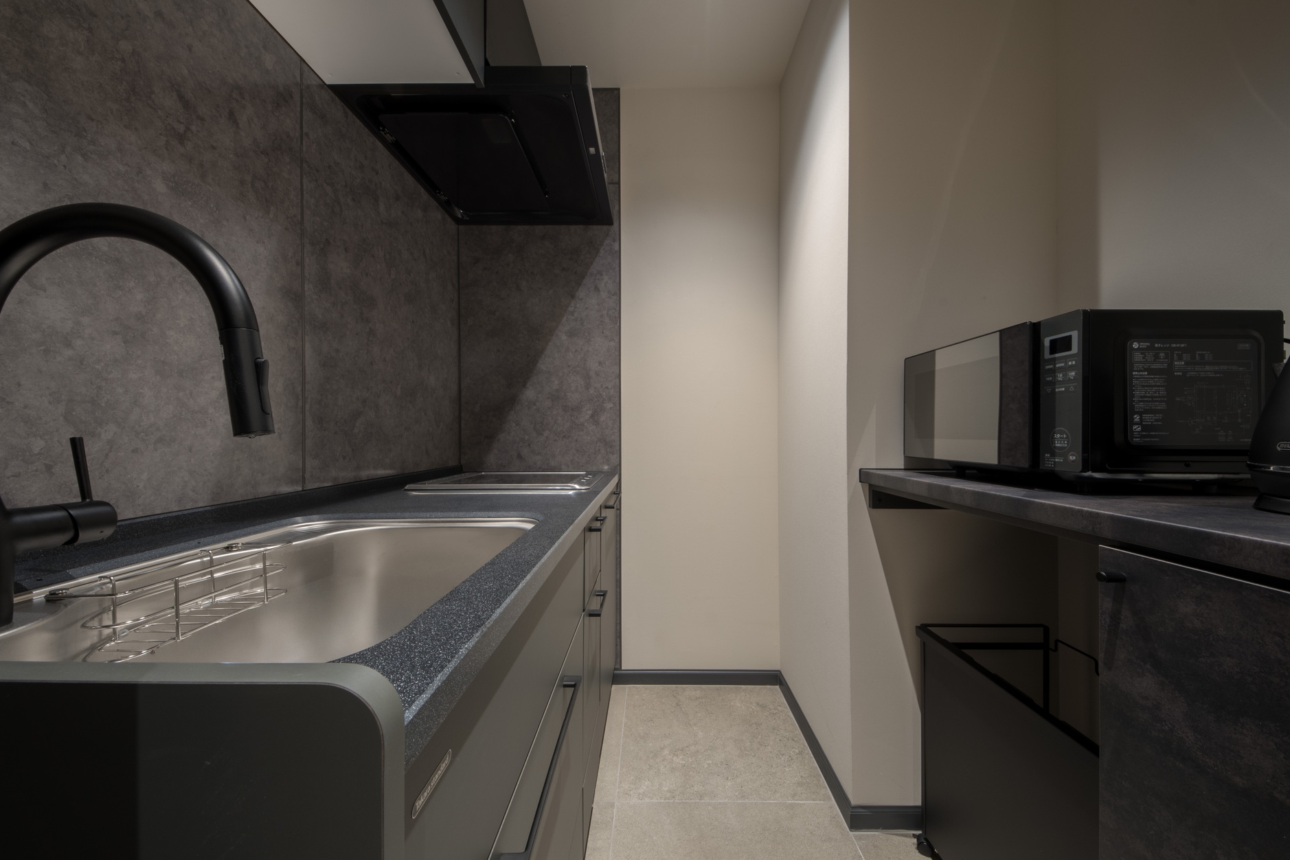 ・キッチン/洗濯機等の設備完備で、ミニマルでありながら機能性を備えている