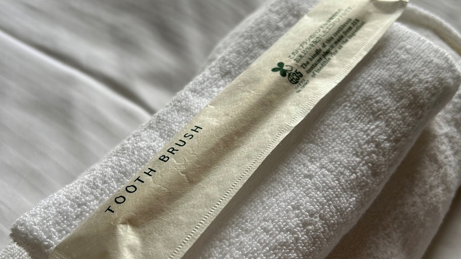バスタオル、フェイスタオル、歯ブラシ、使い捨てスリッパ、