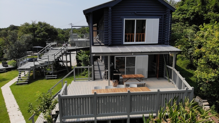 夏は大きなテラスで淡路島の海をバックにBBQを楽しみ、