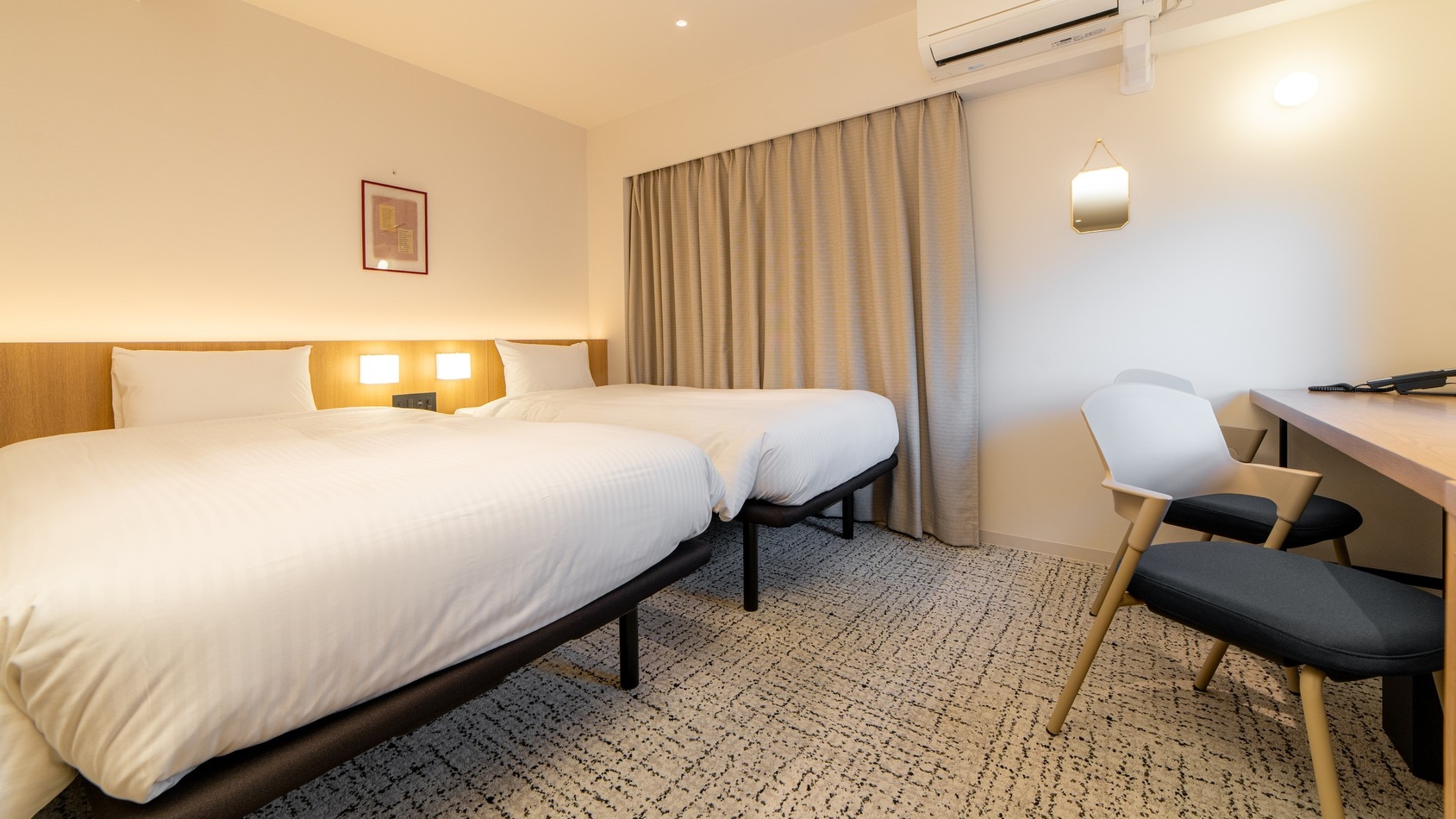 シングルベッド2台を備え、友人同士やカップル、ビジネス利用にも最適なお部屋です。落ち着いた空間で、快適にゆったりとお過ごしいただけます。