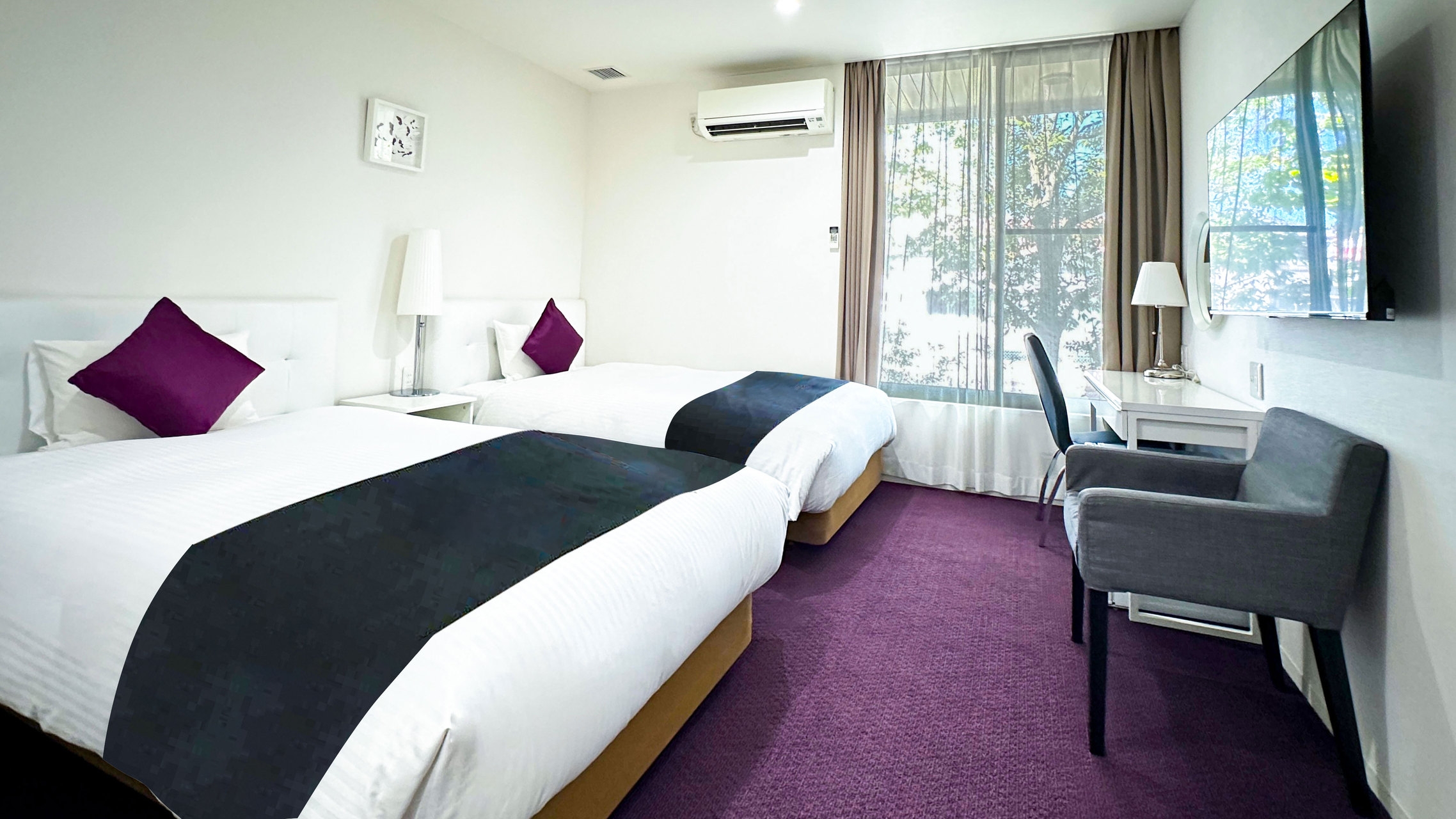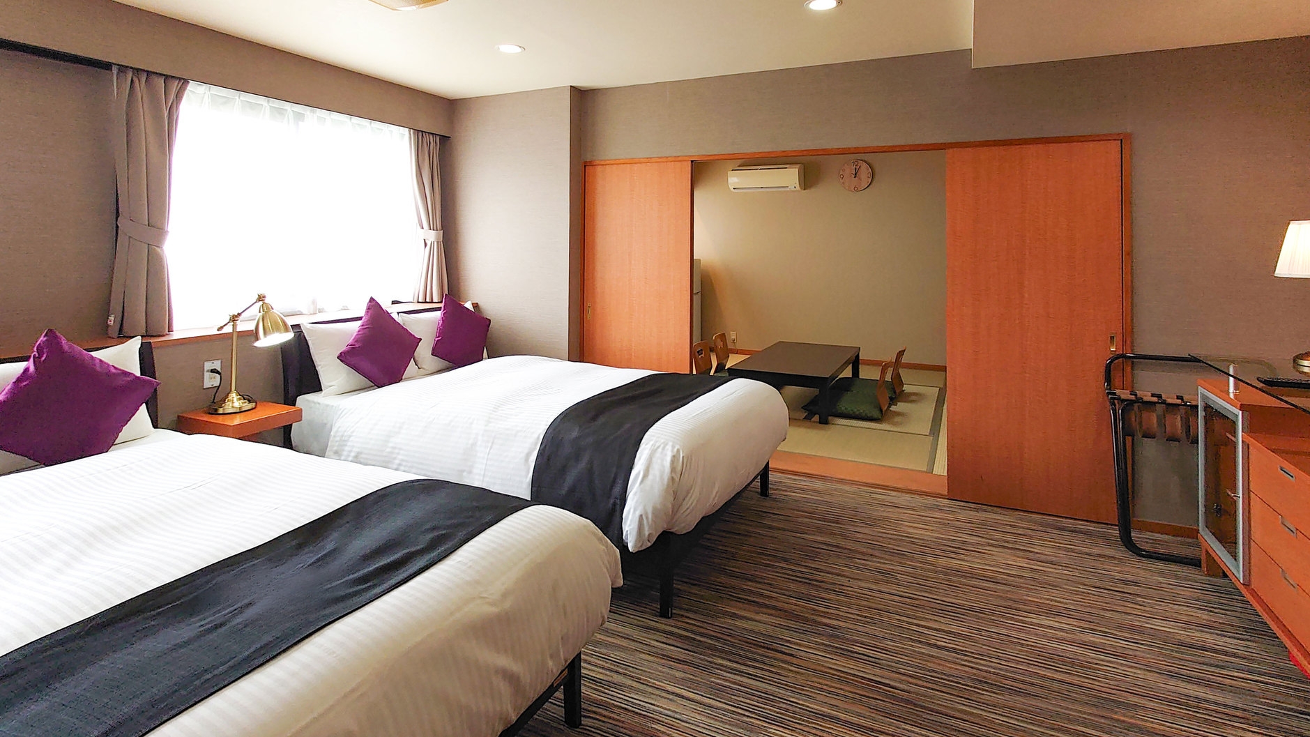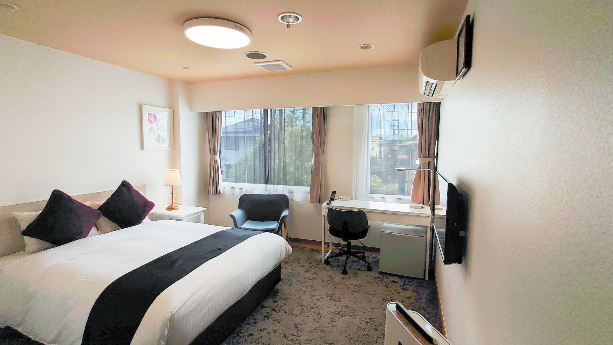 カップルや広々ベッドをご希望の方にオススメ。小さなお子様の添い寝も可能なお部屋です。