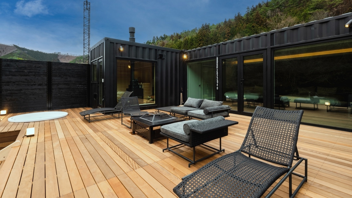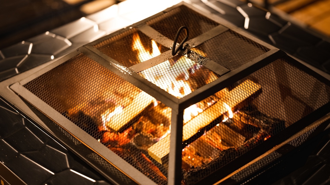 専用庭に流れる渓流や焚き火のぬくもり、星空の下での外気浴。