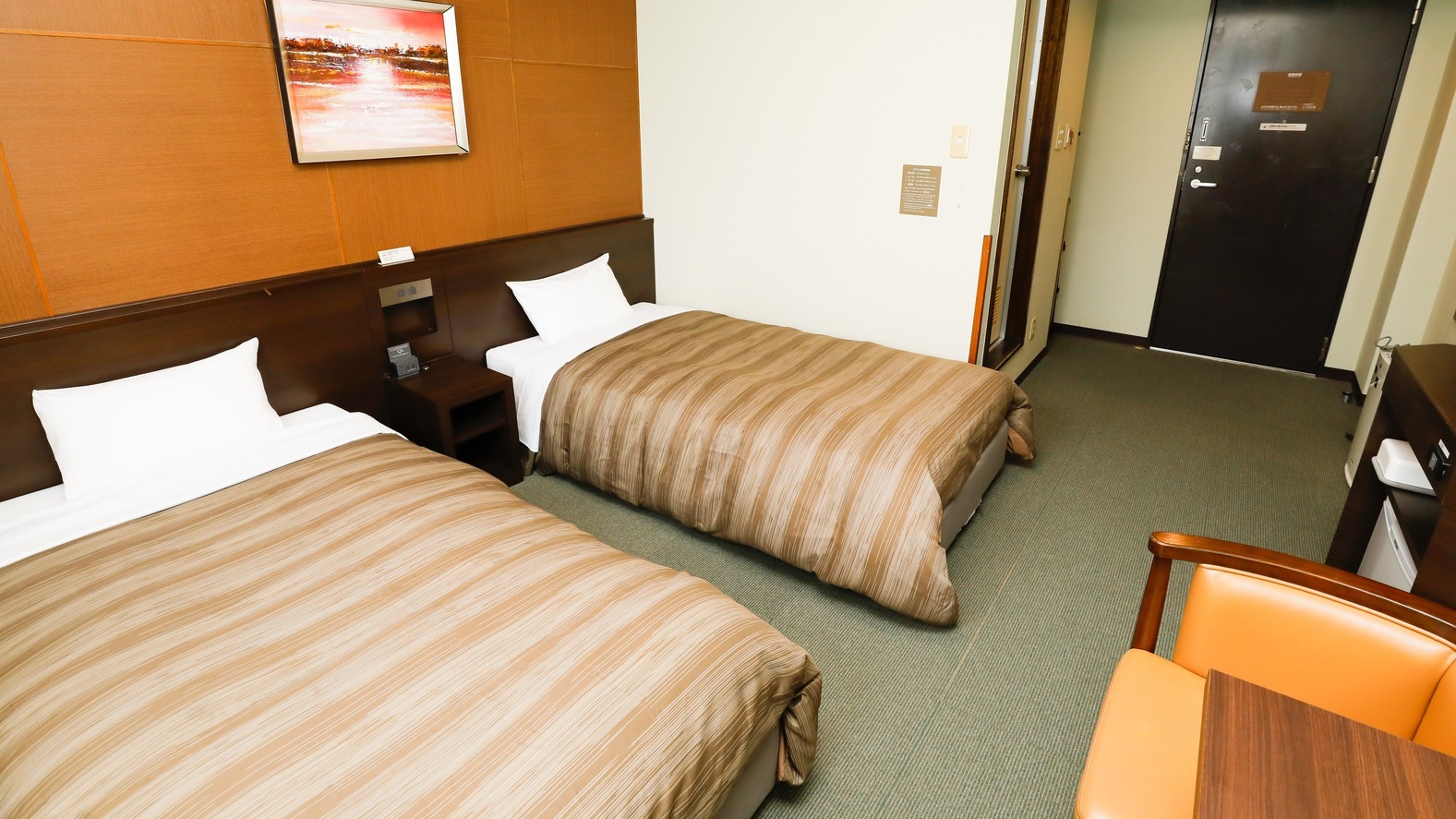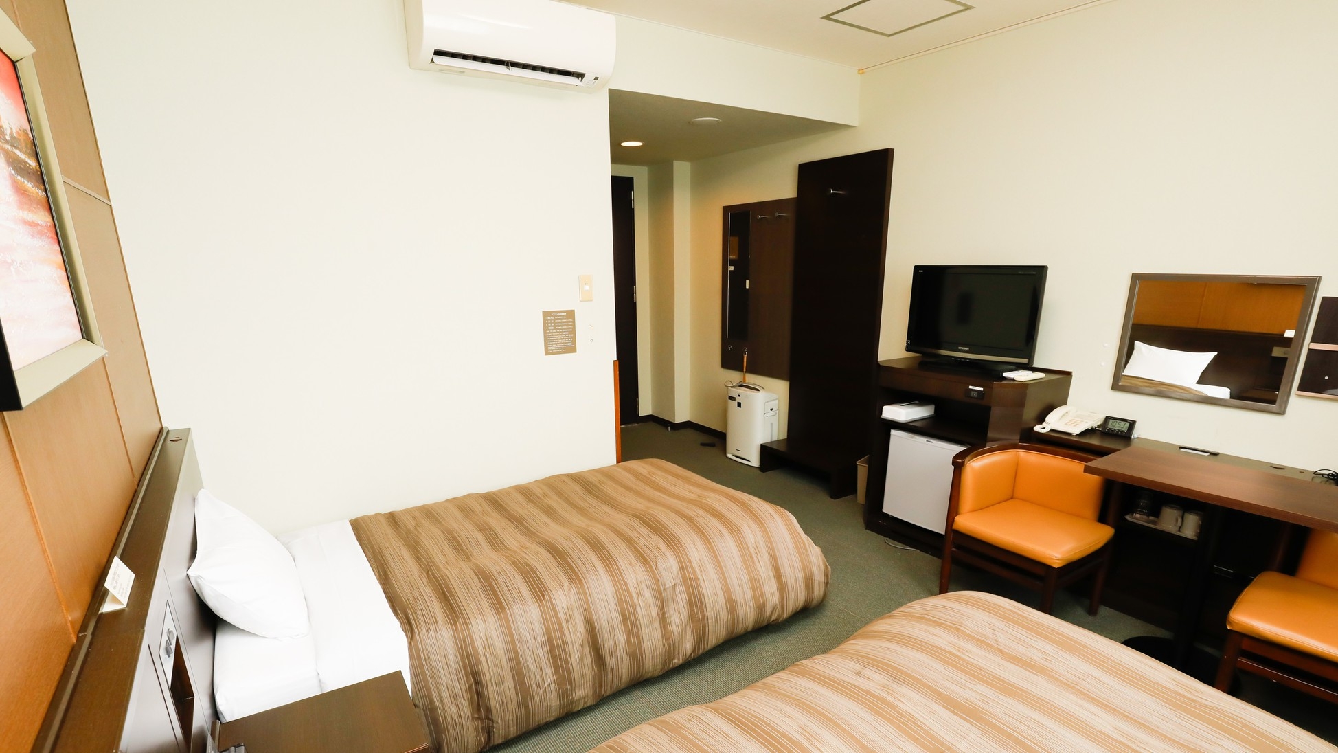19平米|ベッド幅120cm×2台|ユニットバス|トイレ|洗面|無料Wi-Fi|歯ブラシ|ボディスポンジ|コーム|ハンドタオル|バスタオル