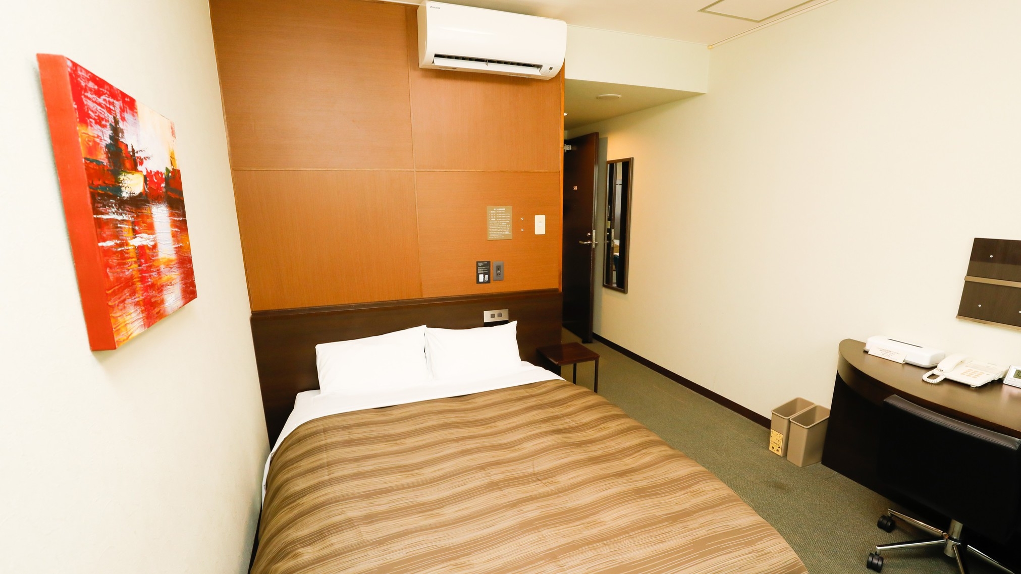 16平米|ベッド幅140cm|ユニットバス|トイレ|洗面|無料Wi-Fi|歯ブラシ|ボディスポンジ|コーム|ハンドタオル|バスタオル