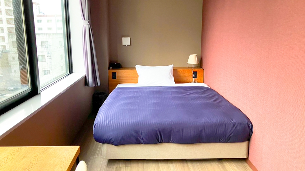 ダブルベットのお部屋です。定員二名。共用トイレ・共用シャワーとなります。