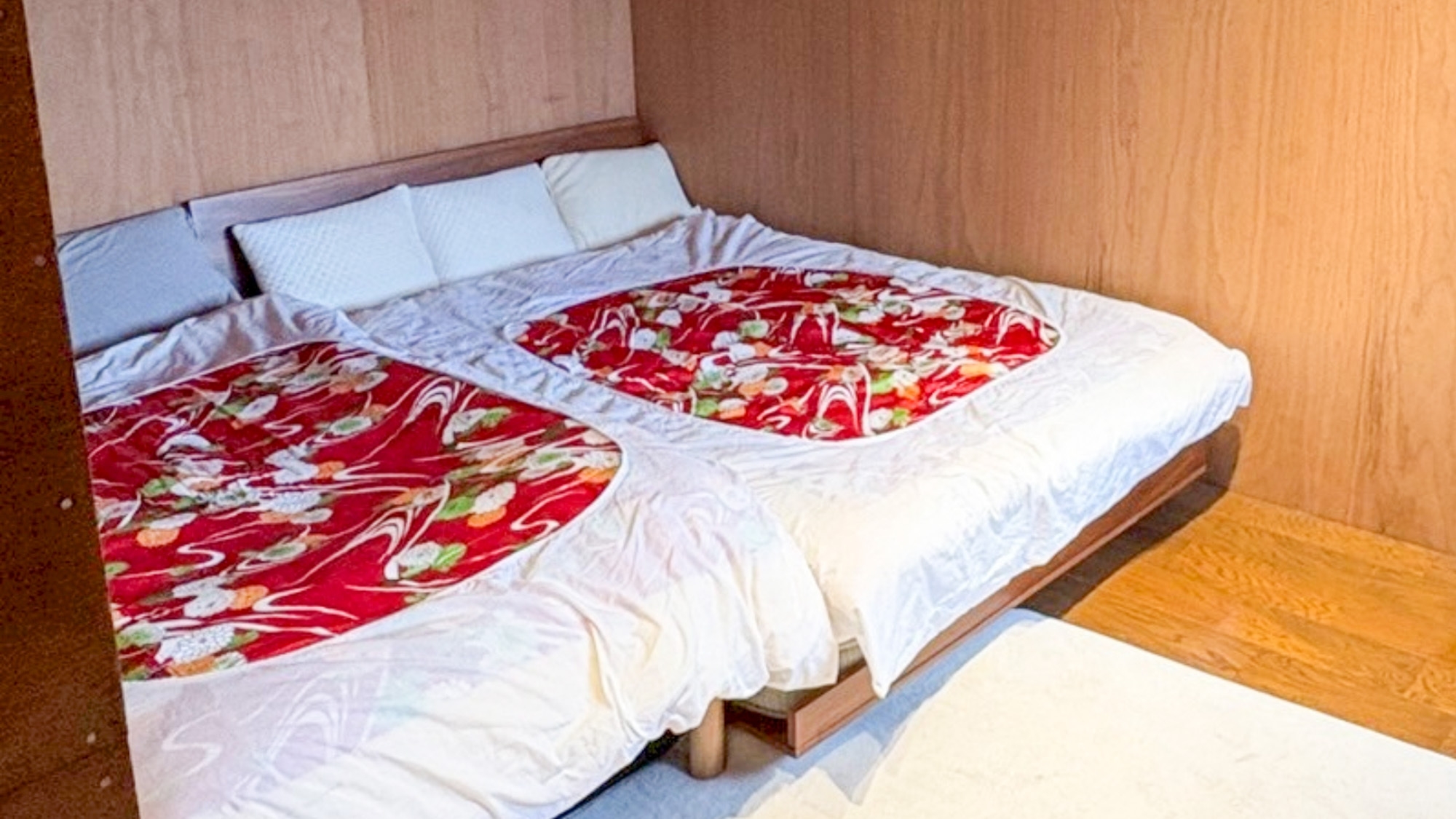 海が目の前、歩いて約10秒の一棟貸し。シングルベッド1台、ダブルベッド1台完備。4名様以上はお布団でお休みください。設備充実のキッチン完備で自炊も可能です。