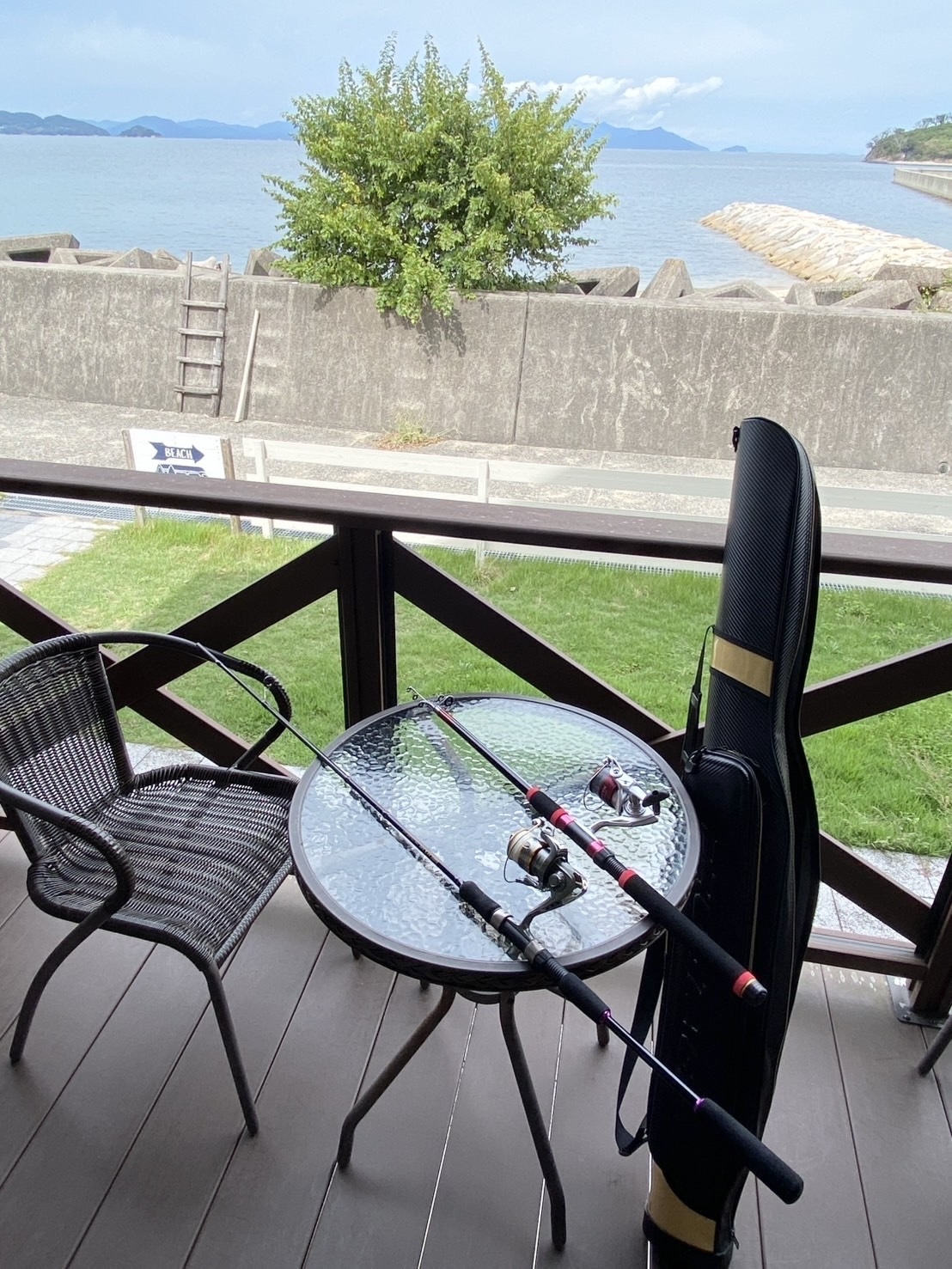 木のあたたかみのあるログハウス。一棟まるまる貸切です◎ オーシャンビューの絶景眺望で海まで徒歩すぐ!釣り道具やBBQ道具も無料でご利用いただけます