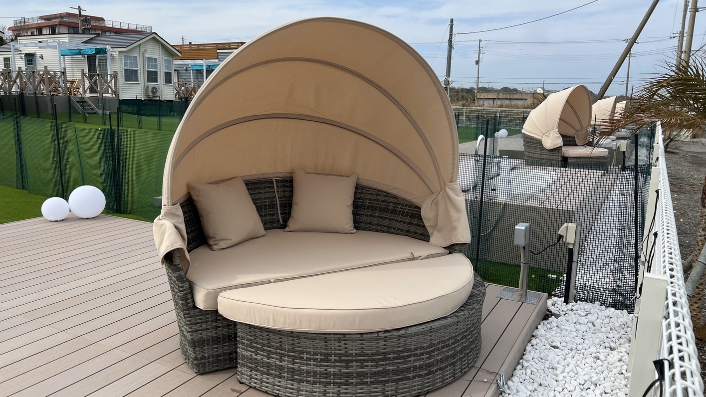 お部屋のウッドデッキにはガス式BBQグリルを完備しており、食材を持参するだけで到着後すぐにBBQを楽しめます(雨天時は利用不可の場合があります)