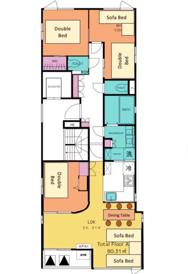 1フロア1部屋の貸し切りタイプ 3ベッドルーム