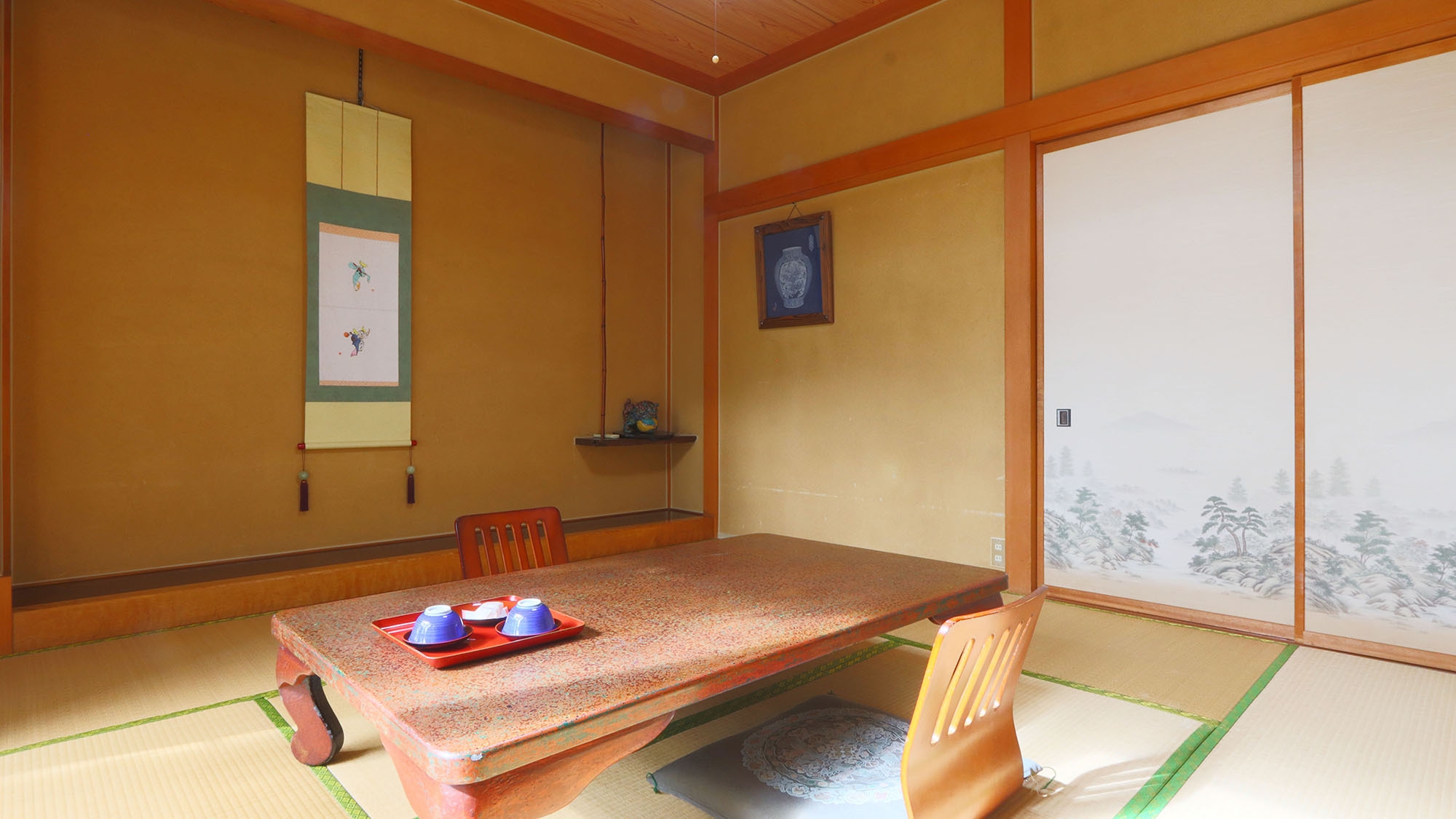2名〜4名でご利用いただけます。昔ながらの風情を残したお部屋のため、施錠ができません。