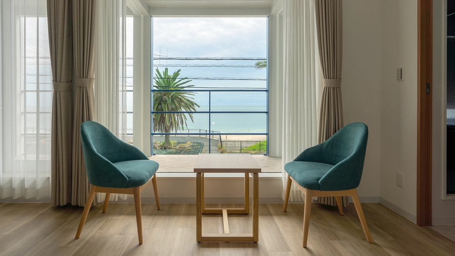 1階にリビング・ダイニング、2階にベッドルームを配した2層構造のメゾネットタイプ。海を臨むバルコニーでは潮風を感じながら、穏やかな時間をお過ごしいただけます。